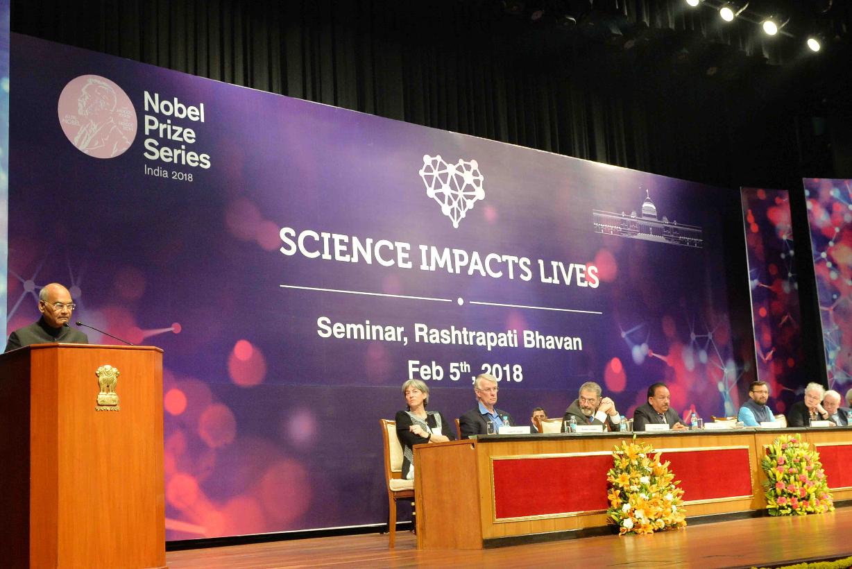 | Caption: | The President of India, Shri Ram Nath Kovind inaugurating the Nobel Laureate Seminar (as part of Nobel Prize Series-2018), at Rashtrapati Bhavan Cultural Centre on February 05, 2018. |