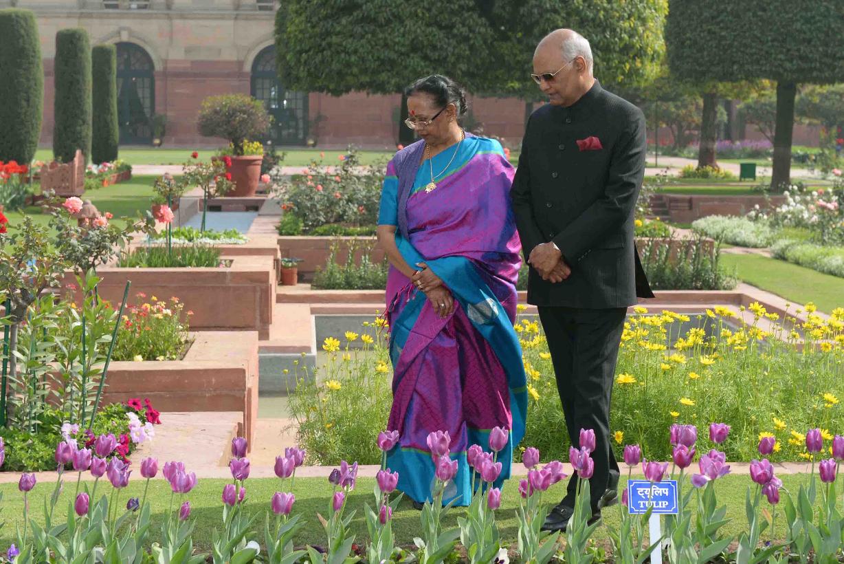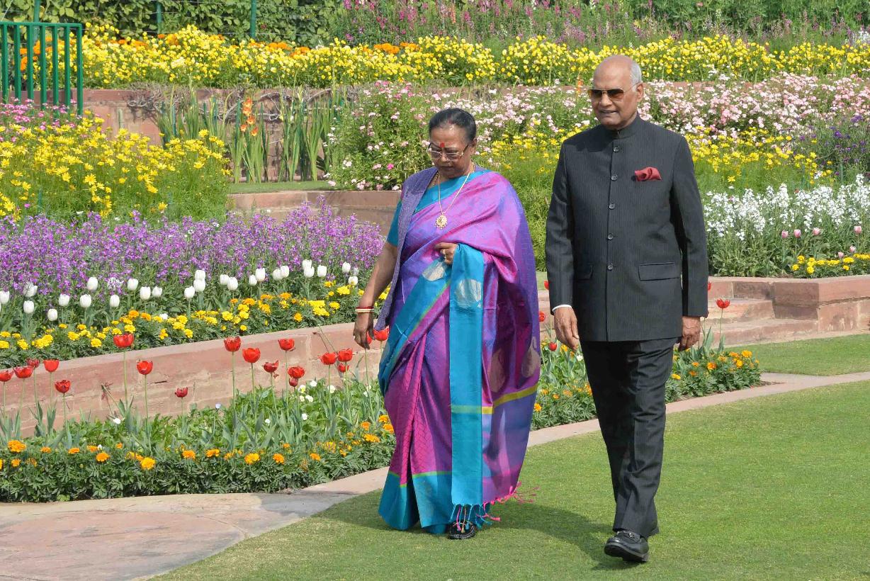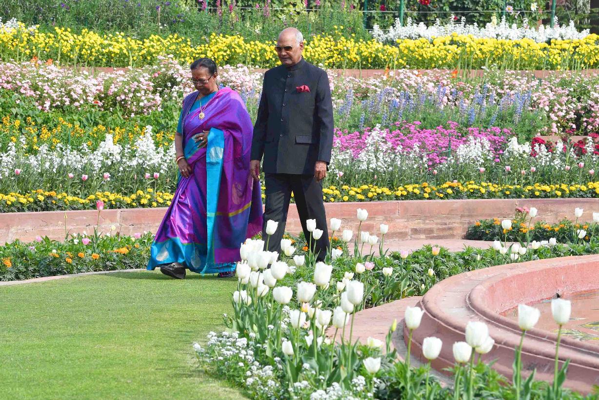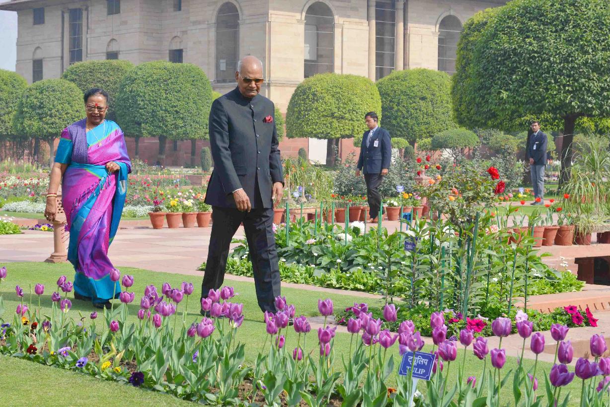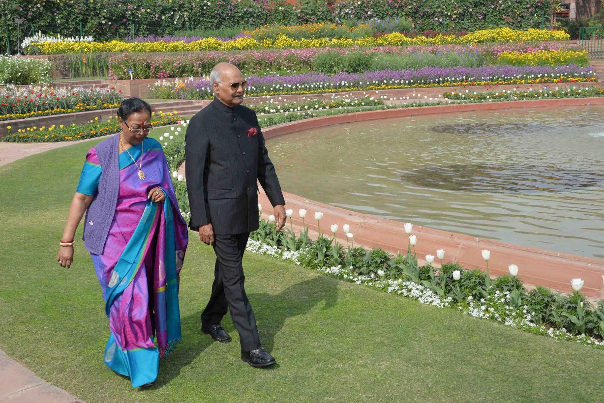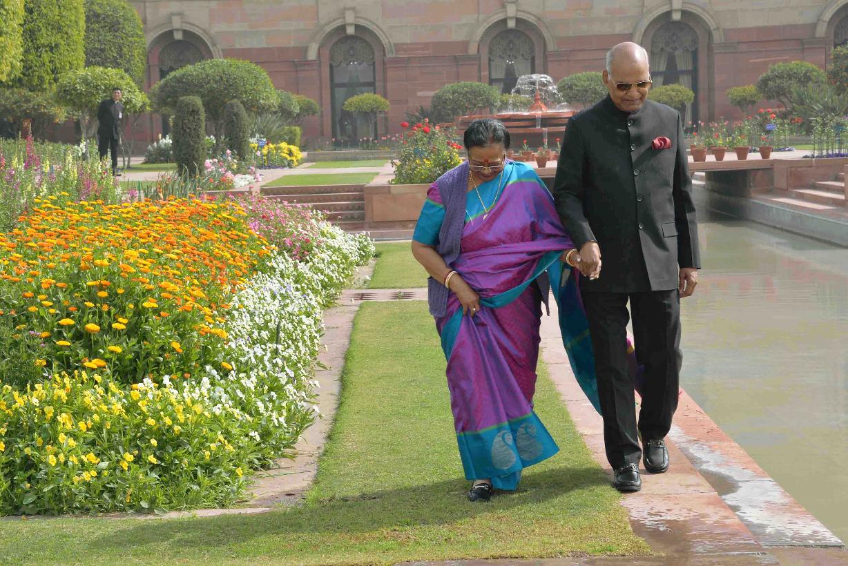 | Caption: | The President of India, Shri Ram Nath Kovind and the First Lady of India, Smt. Savita Kovind walking around at Mughal Garden during the inauguration of Udyanotsav, at Rashtrapati Bhavan on February 05, 2018. |