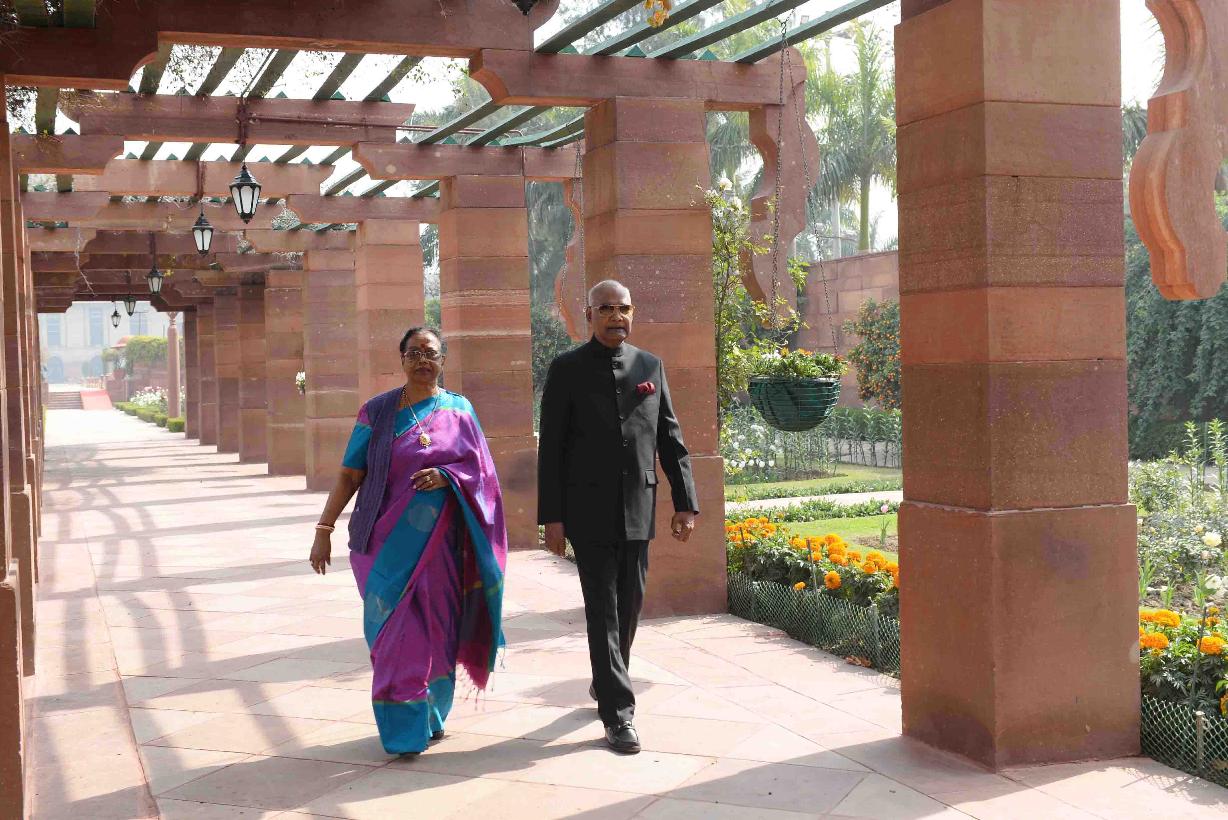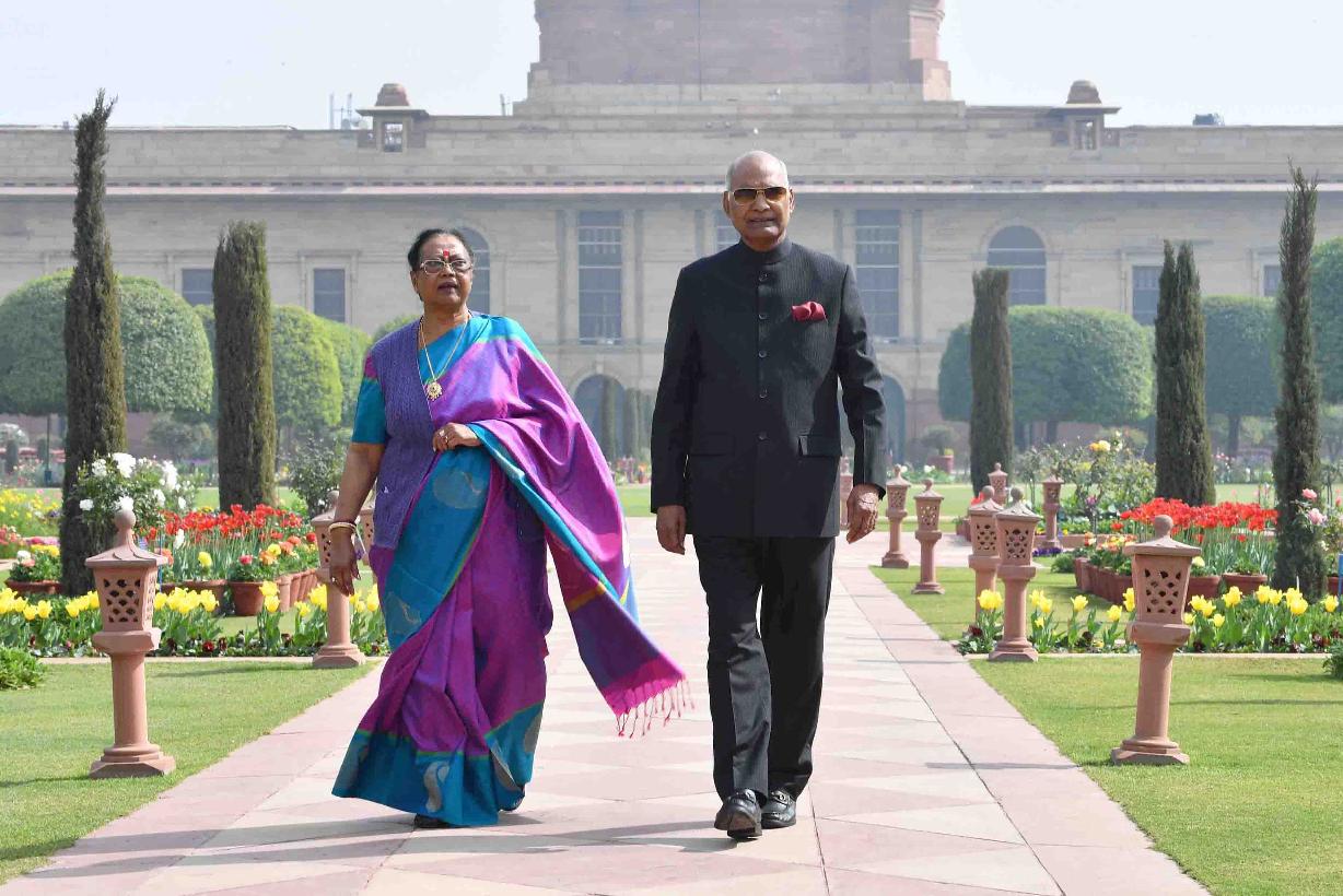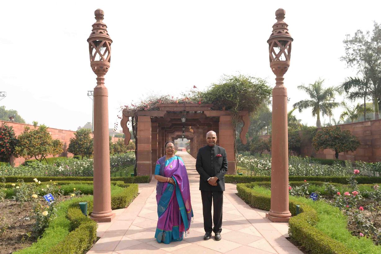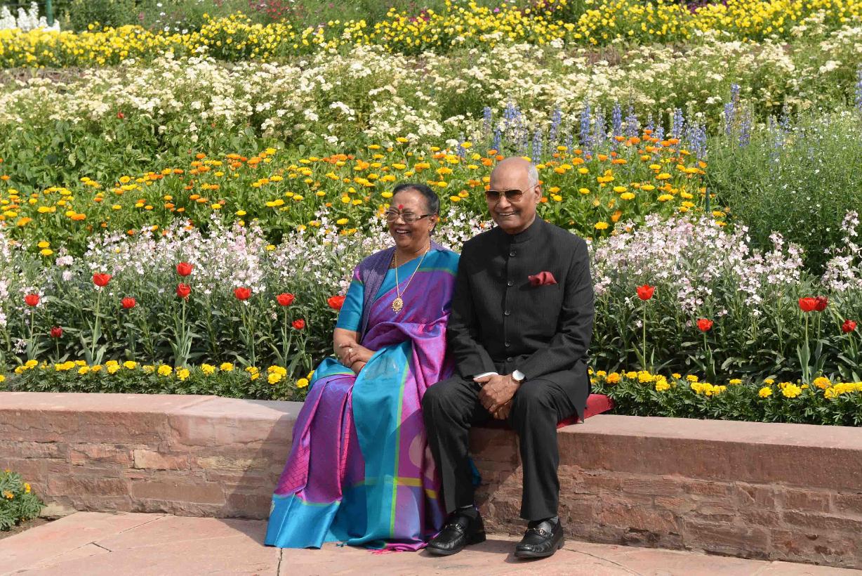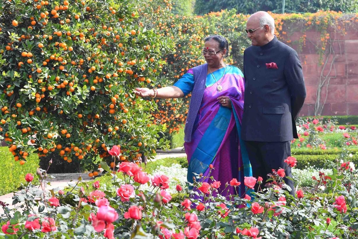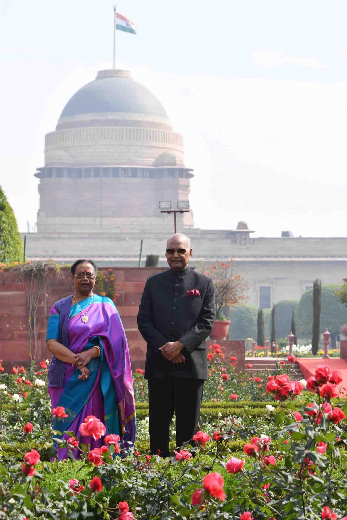 | Caption: | The President of India, Shri Ram Nath Kovind and the First Lady of India, Smt. Savita Kovind walking around at Mughal Garden during the inauguration of Udyanotsav, at Rashtrapati Bhavan on February 05, 2018. |