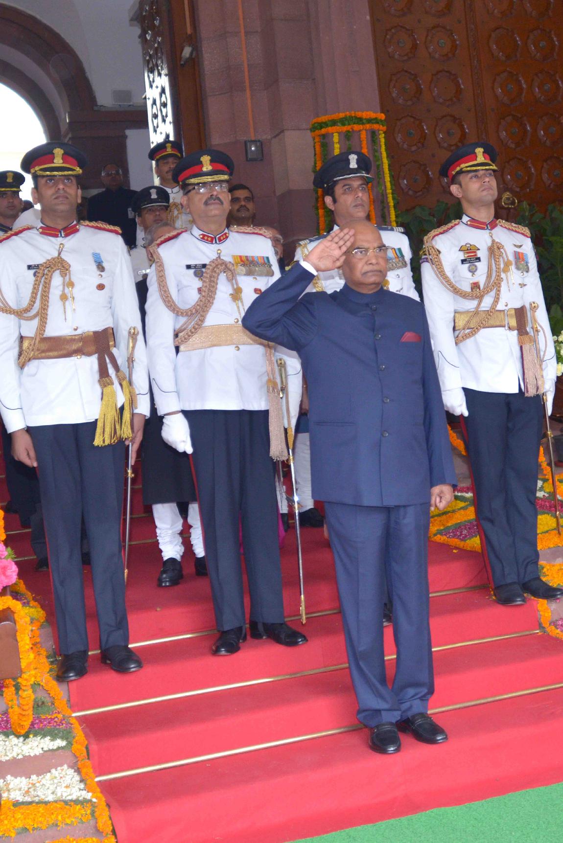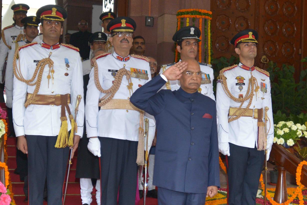 | Caption: | The President of India, Shri Ram Nath Kovind receiving the National Salute from the President's Bodyguard, after a Swearing-in Ceremony in the Central hall of Parliament, in New Delhi on July 25, 2017. |