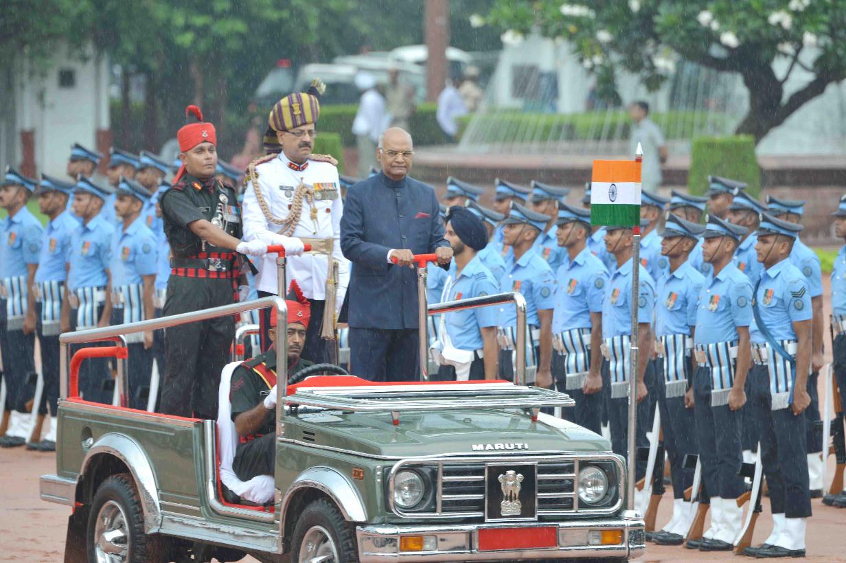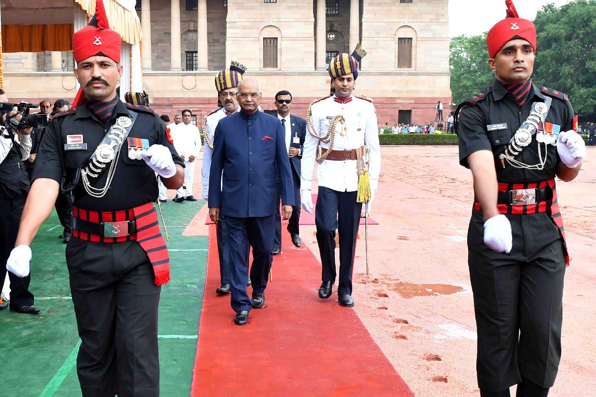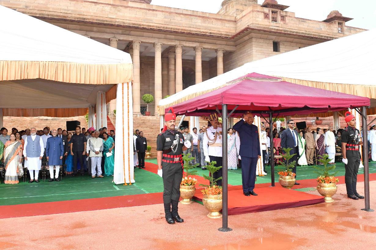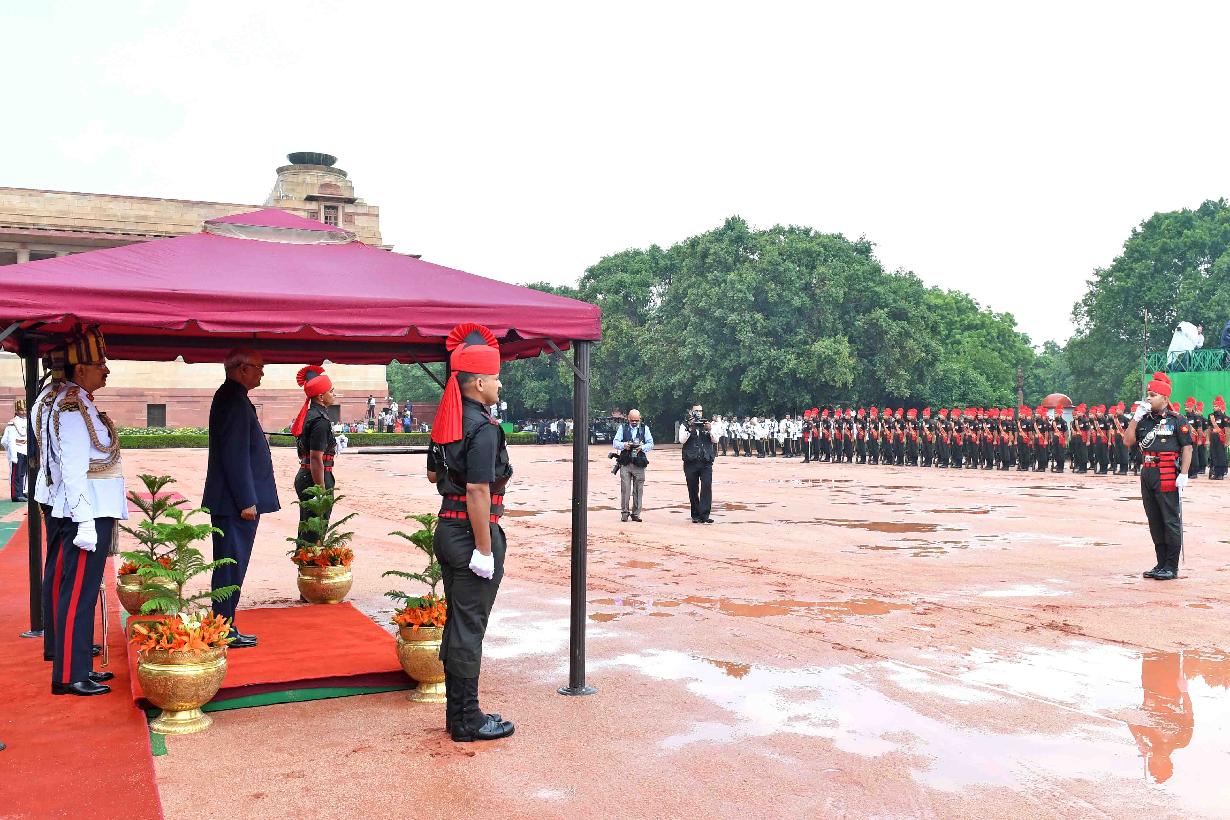 | Caption: | The President of India, Shri Ram Nath Kovind inspecting the Guard of Honour and receiving National Salute from the President's Bodyguard, at Forecourt of Rashtrapati Bhavan on July 25, 2017. |