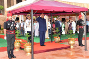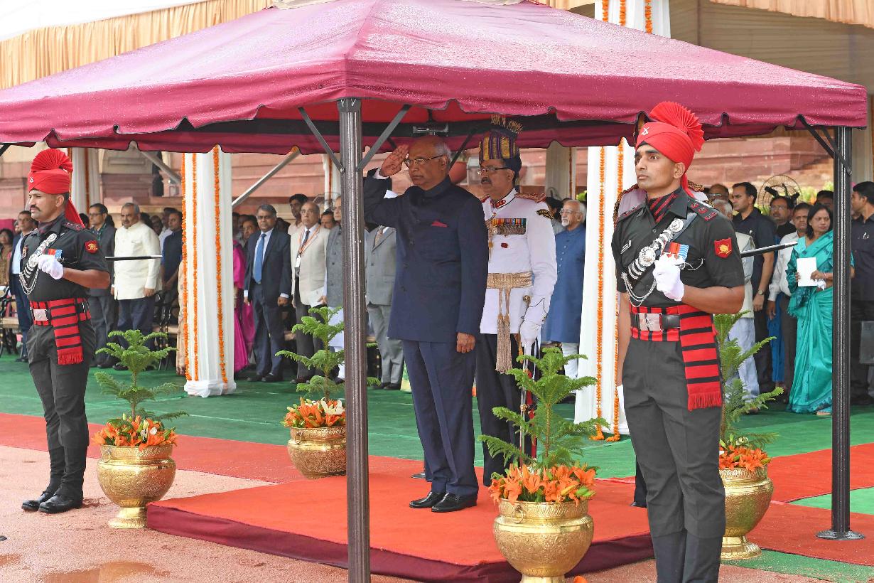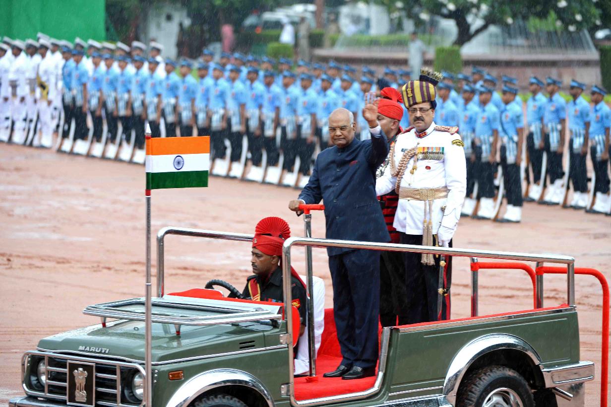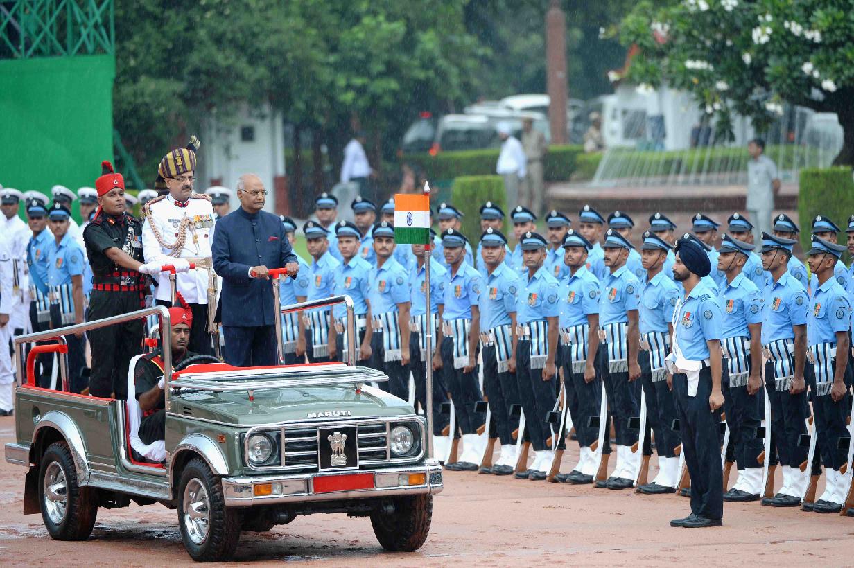 | Caption: | The President of India, Shri Ram Nath Kovind inspecting the Guard of Honour and receiving National Salute from the President's Bodyguard, at Forecourt of Rashtrapati Bhavan on July 25, 2017. |