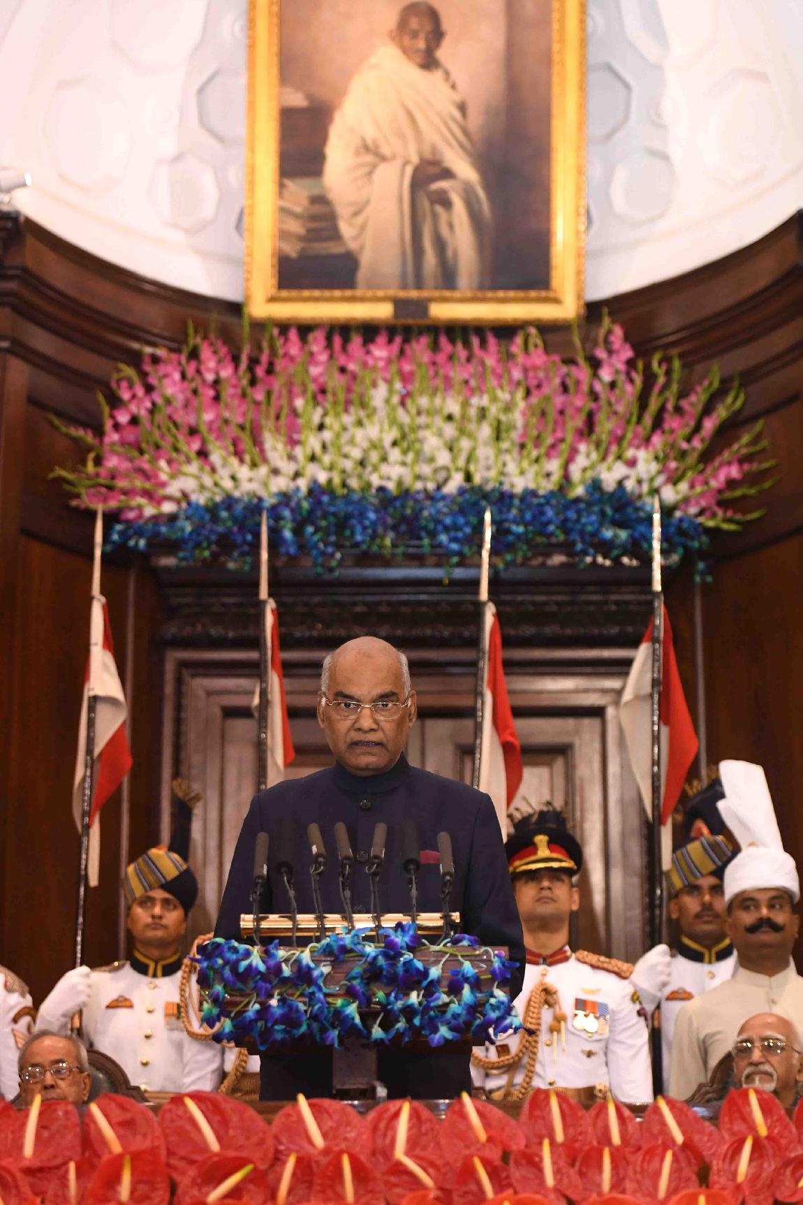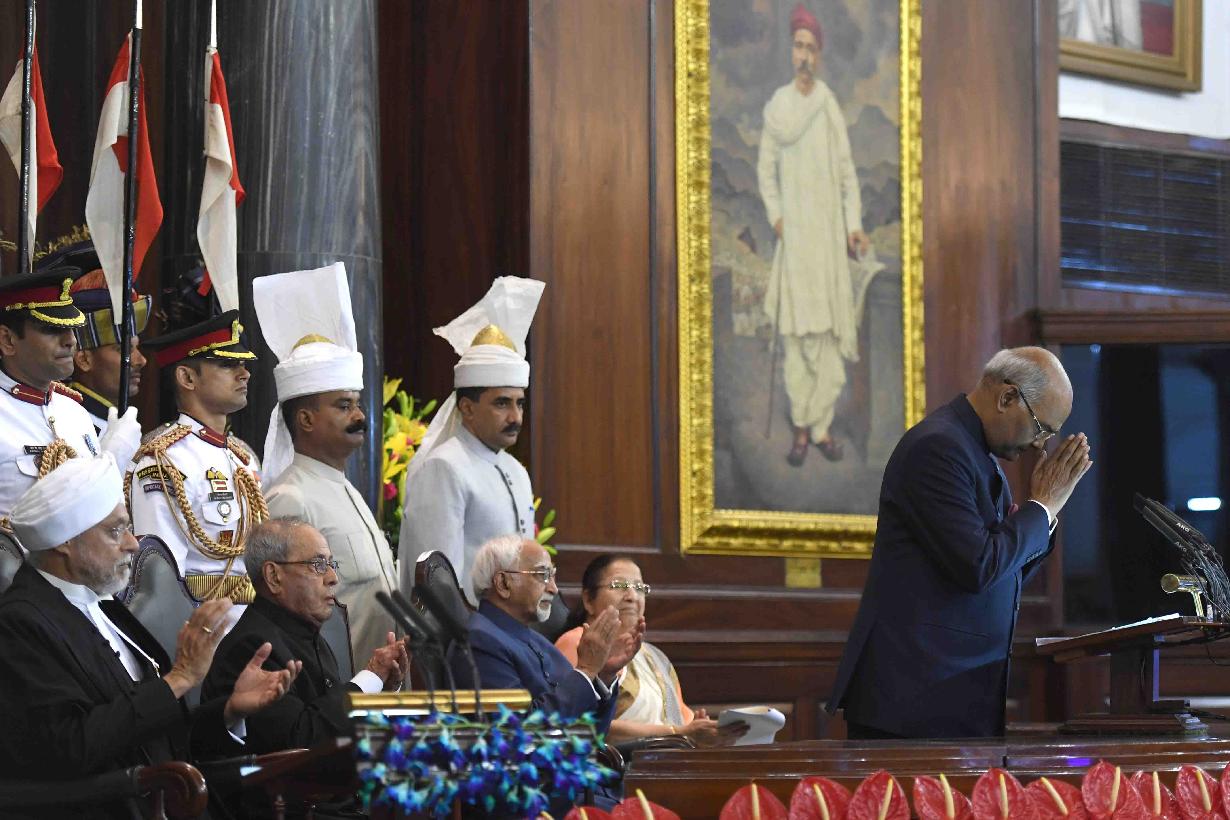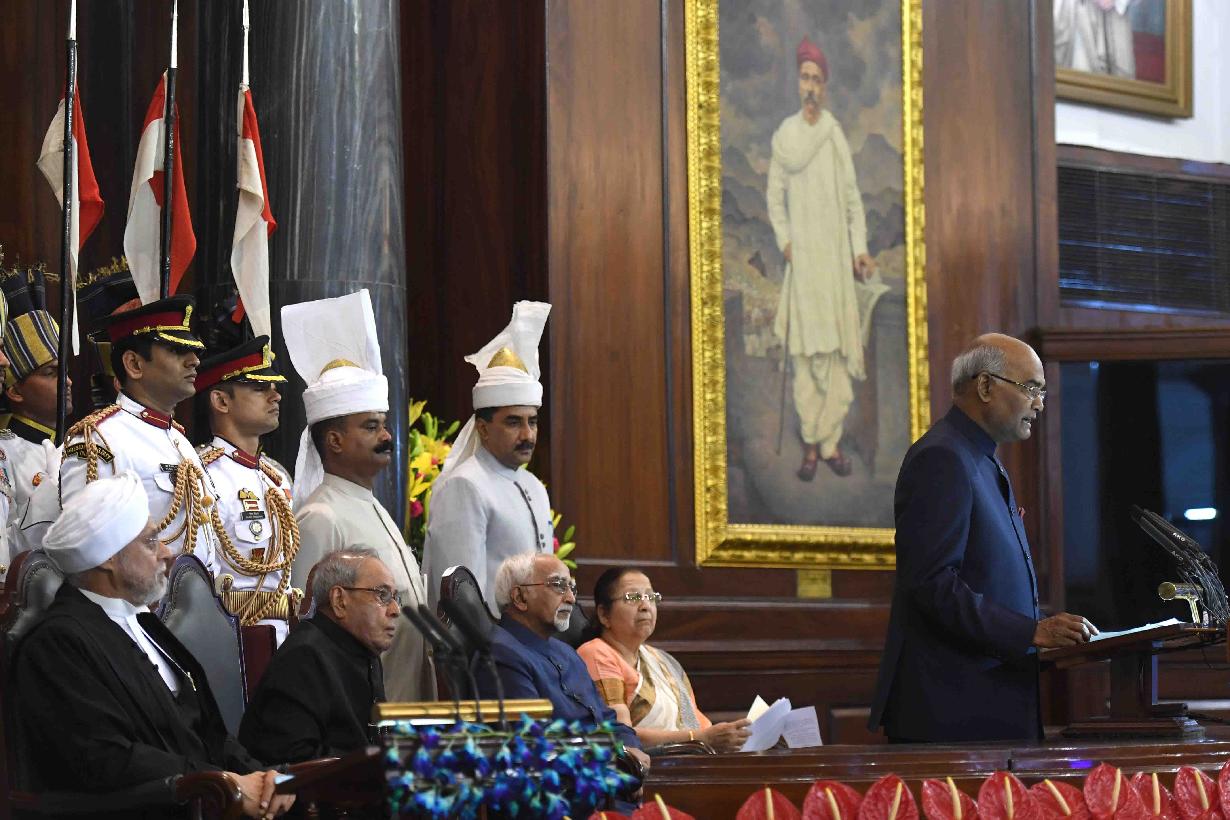 | Caption: | Shri Ram Nath Kovind addressing after taking oath of office of the President of India, at a Swearing-in Ceremony in the Central hall of Parliament, in New Delhi on July 25, 2017. |