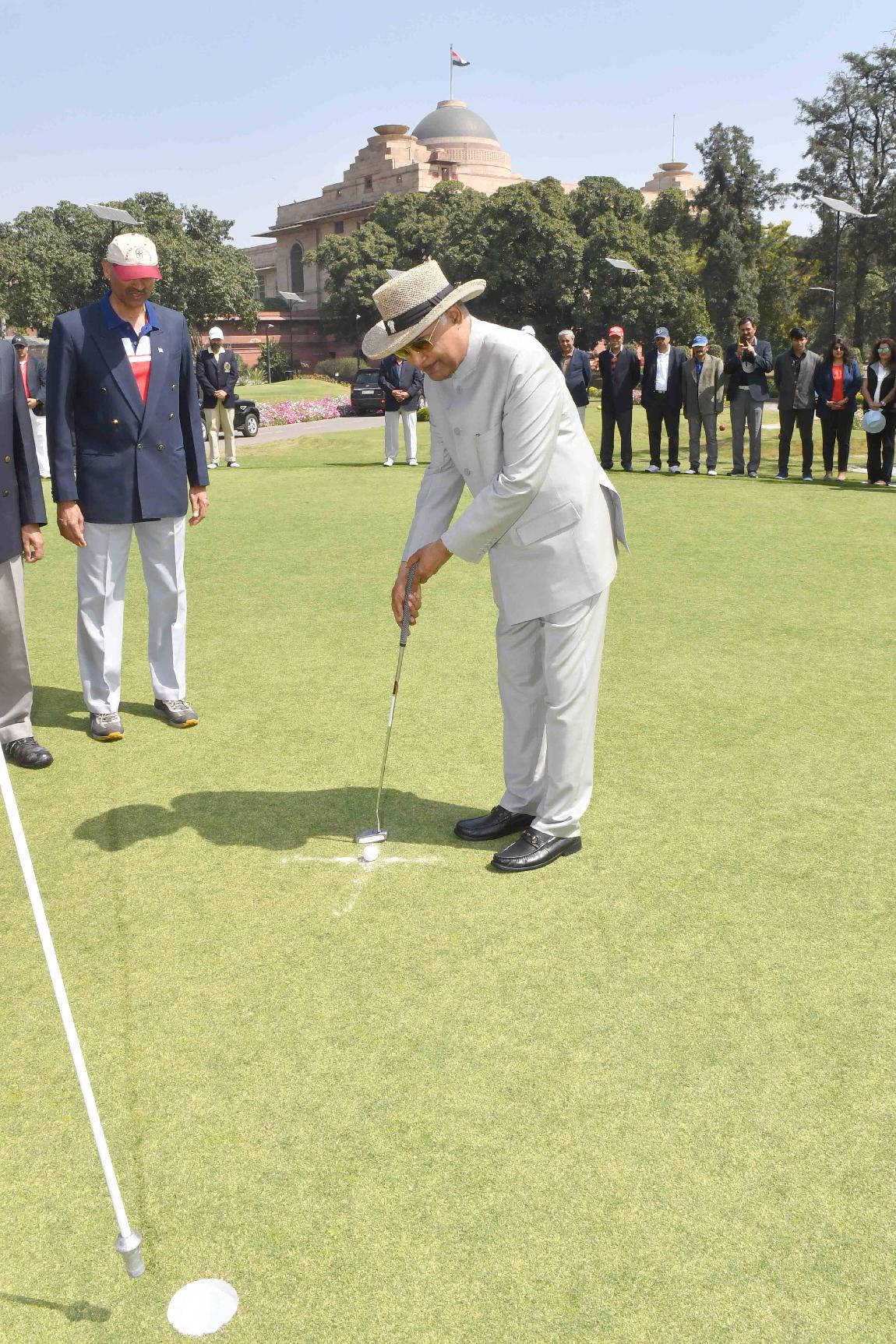 | Caption: | The President of India, Shri Ram Nath Kovind inaugurates the upgraded golf course, at President's Estate on March 17, 2019. |