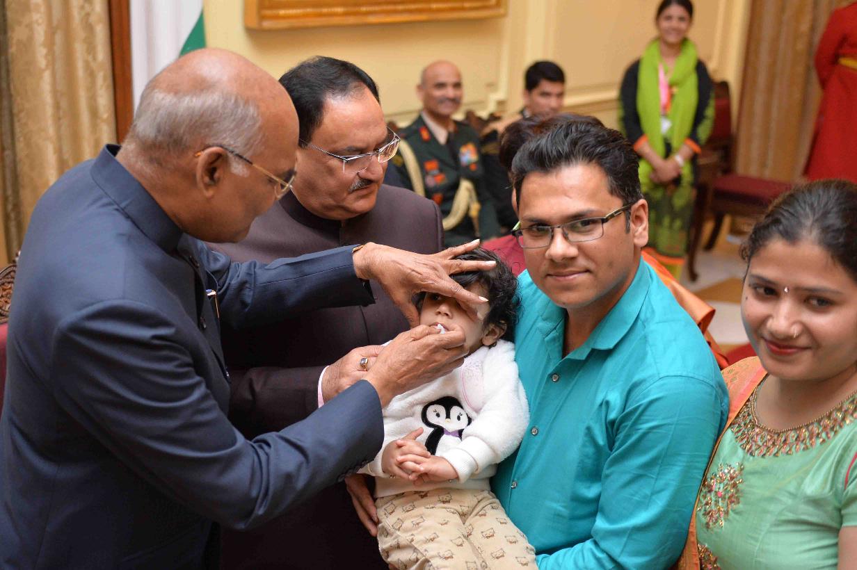 | Caption: | The President of India, Shri Ram Nath Kovind launching the pulse polio programme by administering polio drops to a few children, at Rashtrapati Bhavan on March 09, 2019. |