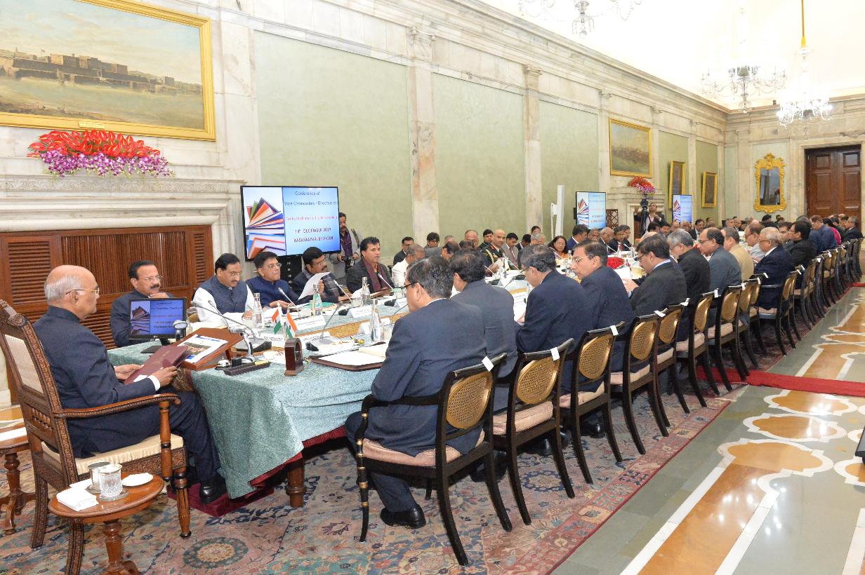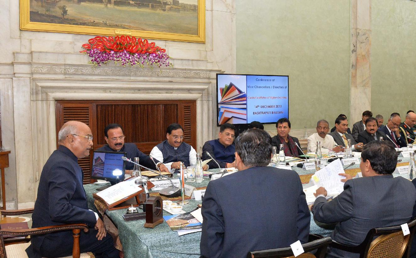 | Caption: | The President of India, Shri Ram Nath Kovind hosting a Conference of Vice Chancellors/Directors of Central Universities/Institutes of Higher Learning, at Rashtrapati Bhavan on December 14, 2019. |