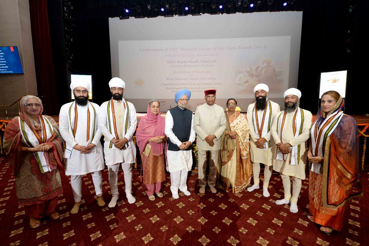 | Caption: | The President of India, Shri Ram Nath Kovind attending the Gurbani Gayan, organised by Bhai Vir Singh Sahitya Sadan as part of the 550th birth anniversary celebrations of Sri Guru Nanak Dev Ji, at Rashtrapati Bhavan Cultural Centre on November 05, 2019. |