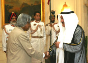 | Caption: | The Ambassador-Designate of State of Kuwait to India, HE Mr Khalaf AI-Foudari presenting his credentials to the President of India, Dr A P J Abdul Kalam at the Yellow Drawing Room of at Rashtrapati Bhavan in New Delhi on May 07, 2004 |