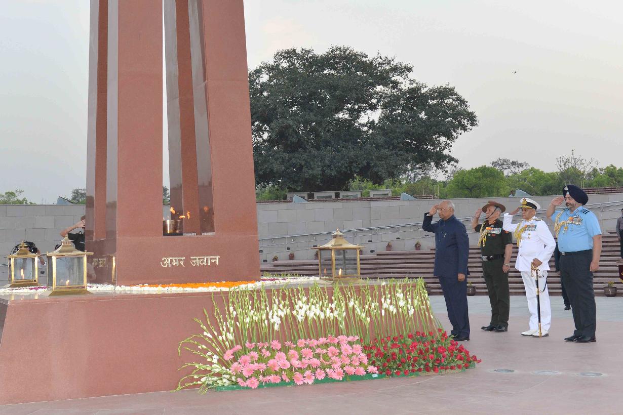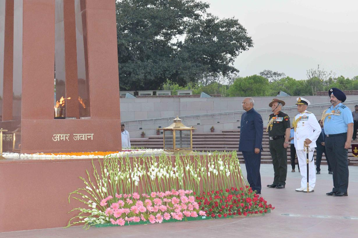| Caption: | The President of India, Shri Ram Nath Kovind visits the National War Memorial and pays tributes to Martyrs, in New Delhi on April 08, 2019. |