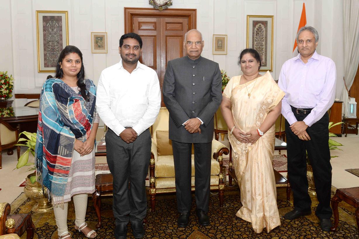 | Caption: | Smt. Kothapalli Geetha, MP (LS) from Araku, Andhra Pradesh alongwith her family members meeting with the President of India, Shri Ram Nath Kovind, at Rashtrapati Bhavan on August 09, 2017. |