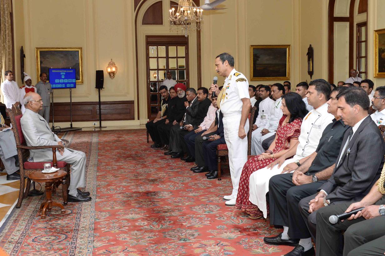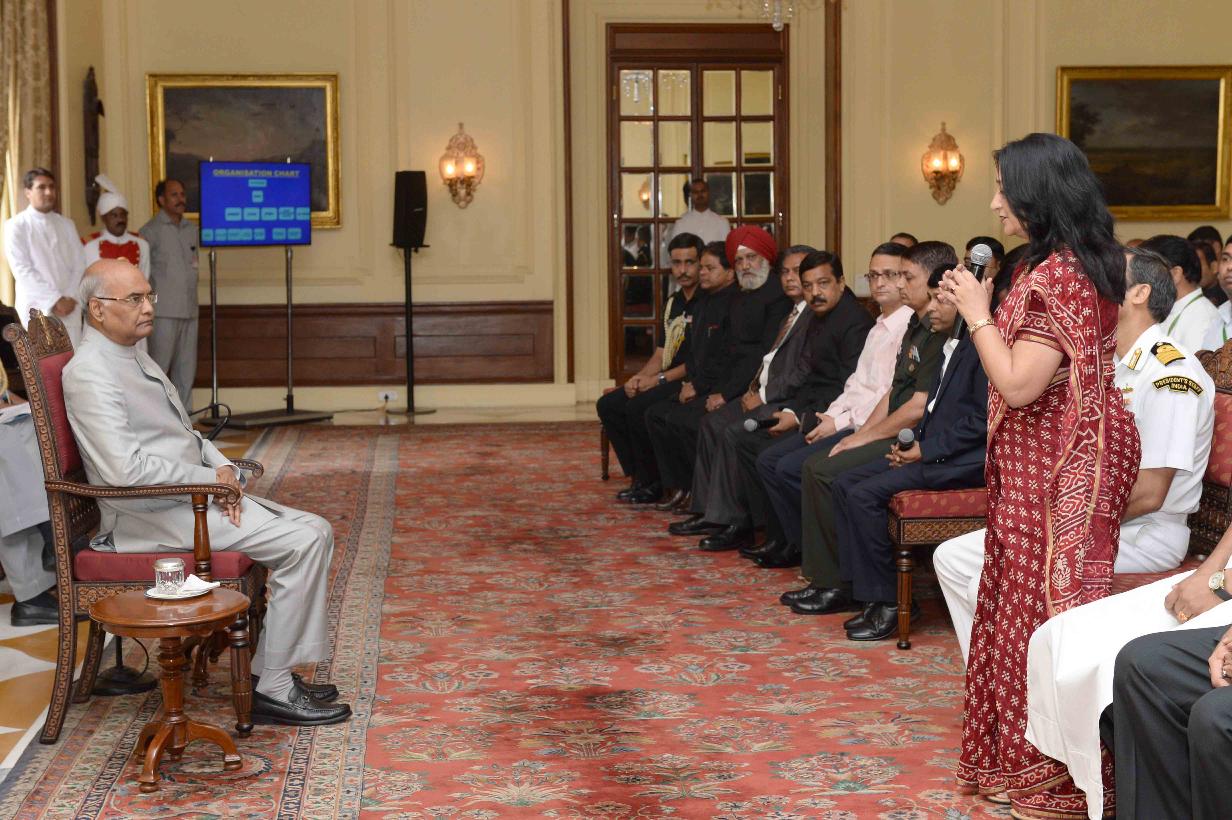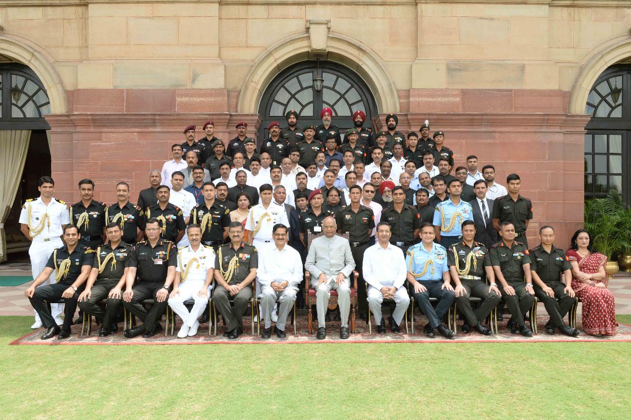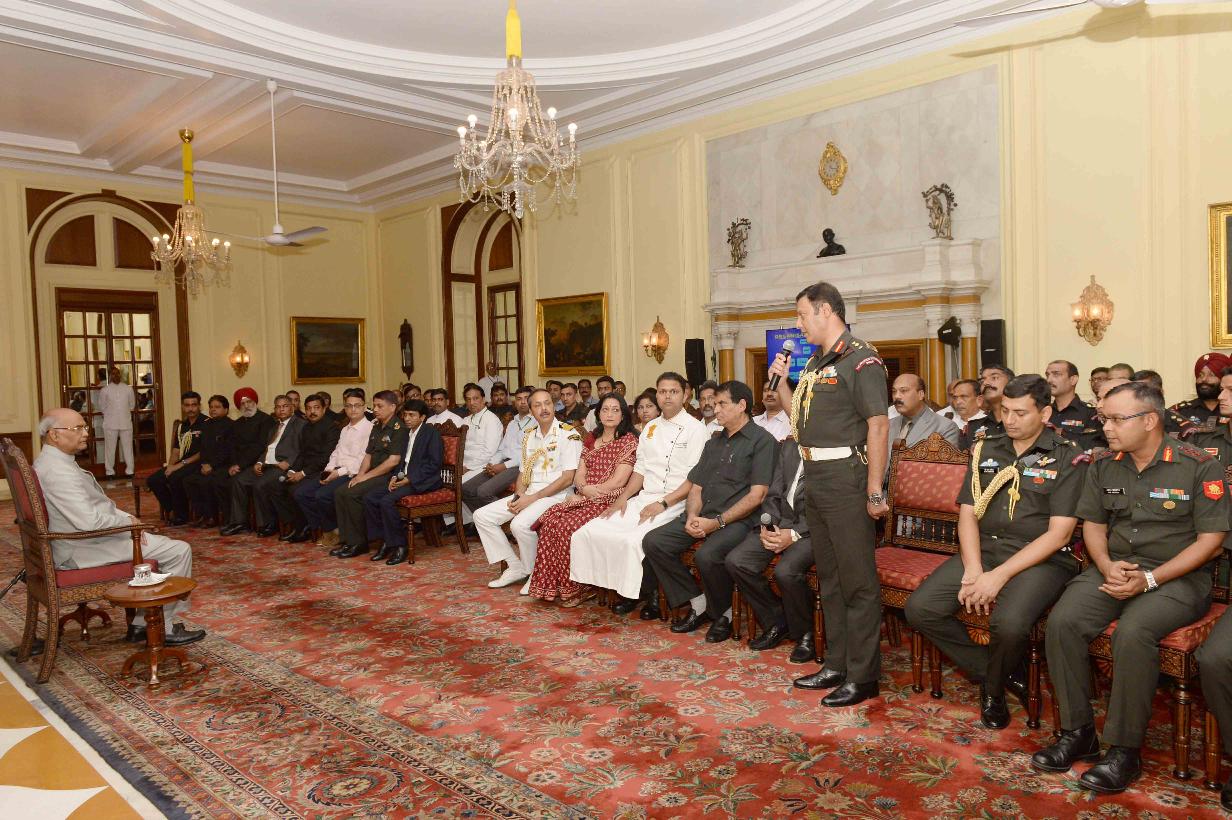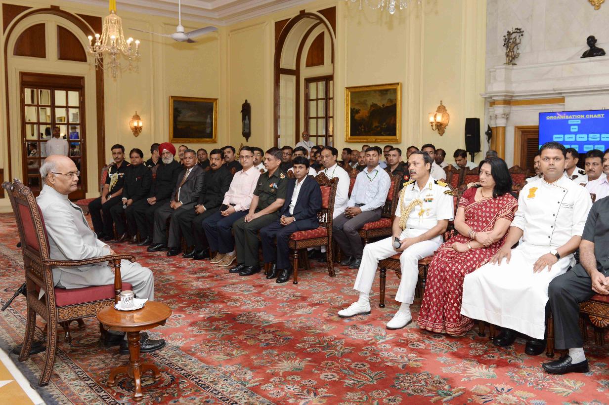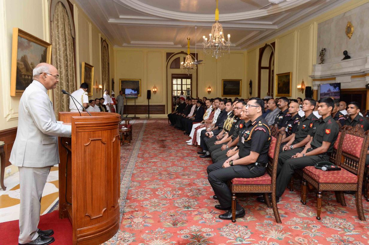 | Caption: | The President of India, Shri Ram Nath Kovind interacting with the officers & staff of Military Wing, PBG and Ceremonial Battalion (Army Guard), at Rashtrapati Bhavan on August 05, 2017. |