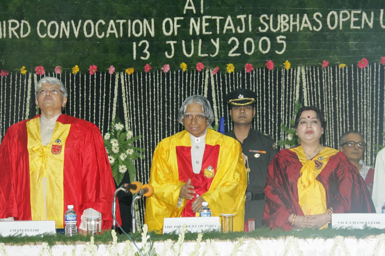 | Caption: | The President of India, Dr A P J Abdul Kalam addressing at the Third Convocation of Netaji Subhash Open University at Kolkata in West Bengal on July 13, 2005 |