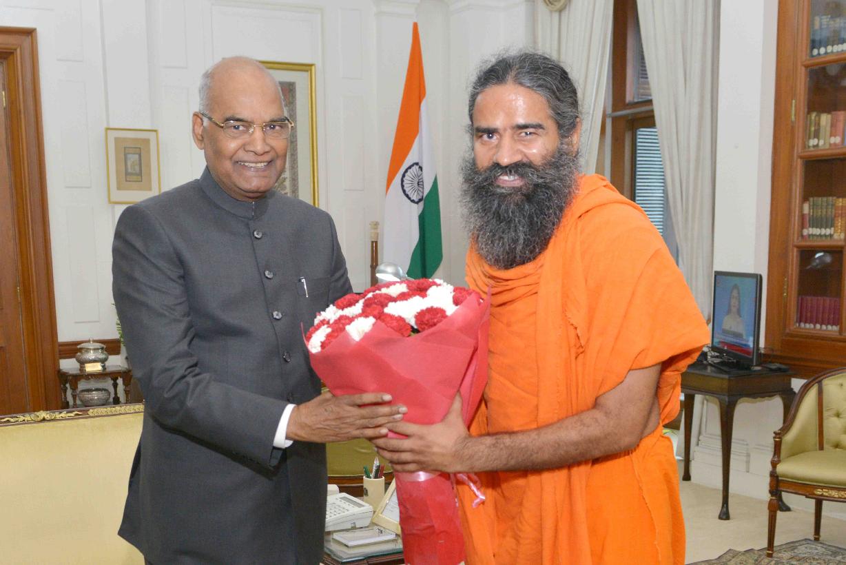 | Caption: | Baba Ramdev meeting with the President of India, Shri Ram Nath Kovind, at Rashtrapati Bhavan on August 09, 2017. |