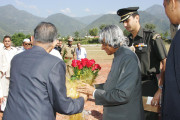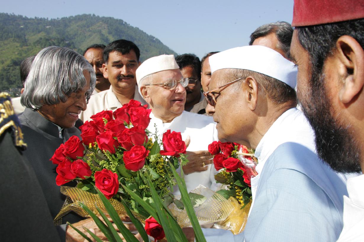 | Caption: | The President of India, Dr A P J Abdul Kalam being welcomed at Srinagar Helipad in Uttaranchal on Oct 16, 2005 |