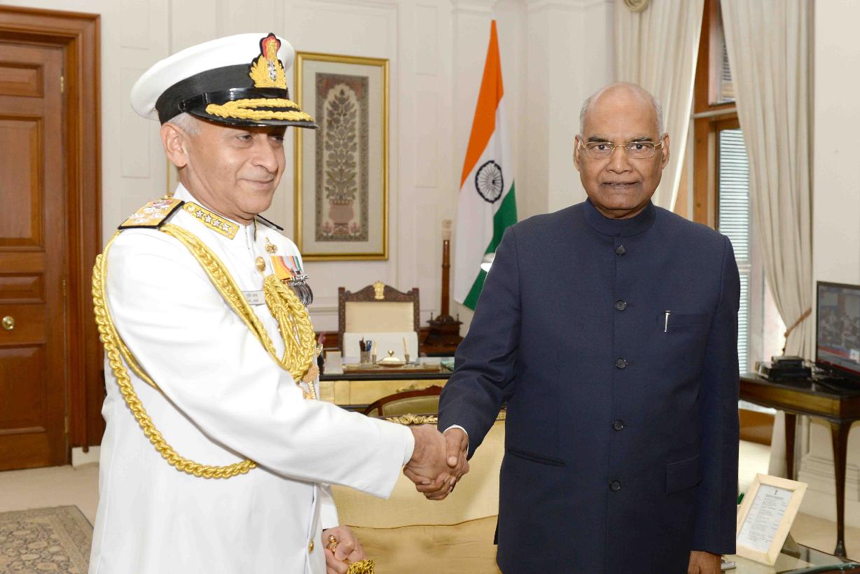 | Caption: | The Chairman, Chiefs of Staff Committee and Chief of the Naval Staff, Admiral Sunil Lanba calling on the President of India, Shri Ram Nath Kovind, at Rashtrapati Bhavan on August 01, 2017. |
