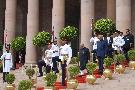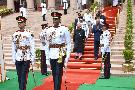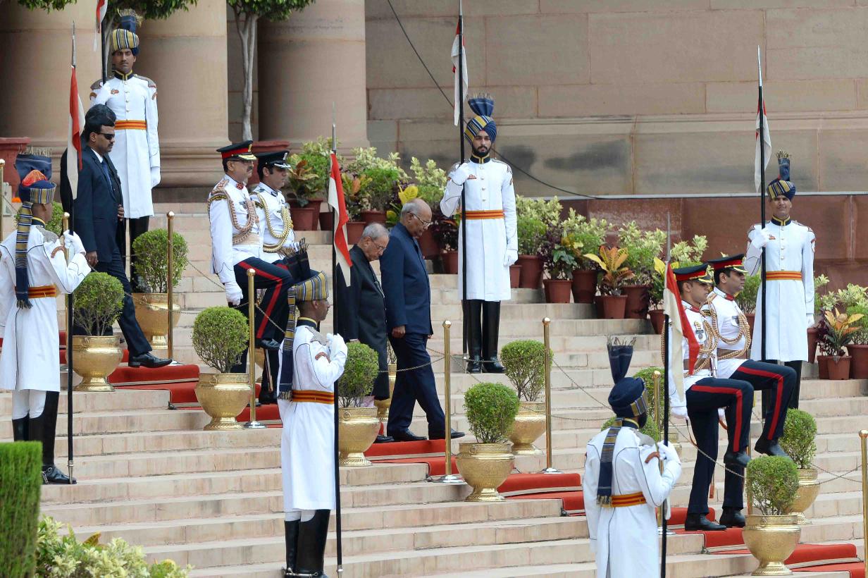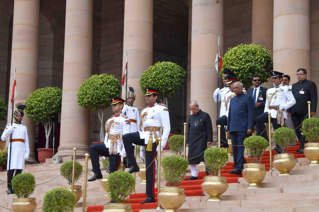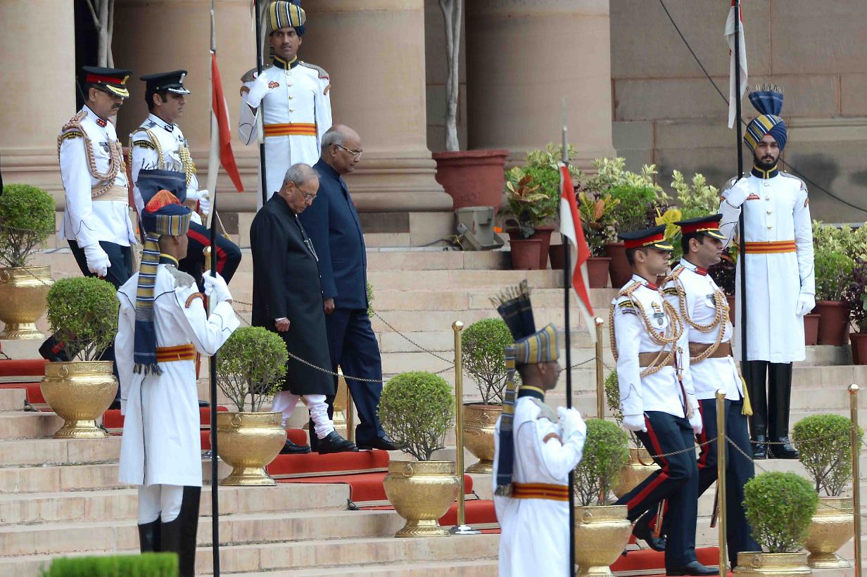 | Caption: | The President of India, Shri Pranab Mukherjee alongwith the President-elect, Shri Ram Nath Kovind in a procession for National Salute from the President's Bodyguard, at forecourt of Rashtrapati Bhavan on July 25, 2017. |