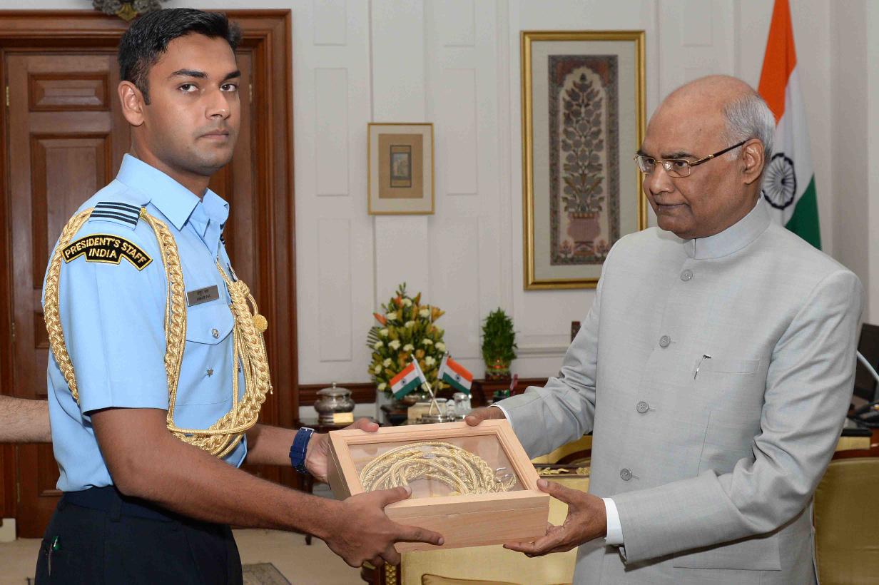 | Caption: | The President of India, Shri Ram Nath Kovind presenting Aiguillettes to Flt. Lt. Ankur Pal, ADC to the President, at Rashtrapati Bhavan on August 02, 2017. |