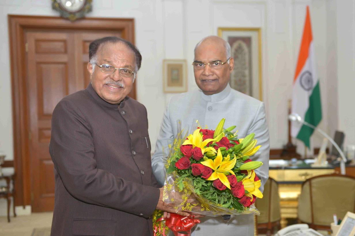 | Caption: | The Deputy Chairman, Rajya Sabha, Prof. P.J. Kurien calling on the President of India, Shri Ram Nath Kovind, at Rashtrapati Bhavan on August 02, 2017. |