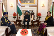 | Caption: | Air Marshal RKS Shera, ADC, AOC-in-C, HQ, Maintenance Command along with his wife Smt. Jaspreet Shera meeting with the President of India, Shri Ram Nath Kovind, at Rashtrapati Bhavan on December 16, 2019. |