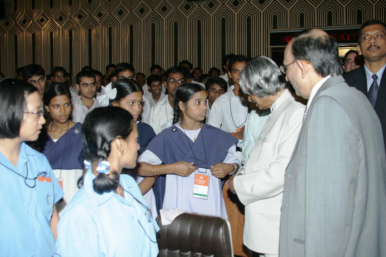 | Caption: | The President of India, Dr A P J Abdul Kalam interacting with the School Students from Rural Areas at Kolkata in West Bengal on July 13, 2005 |