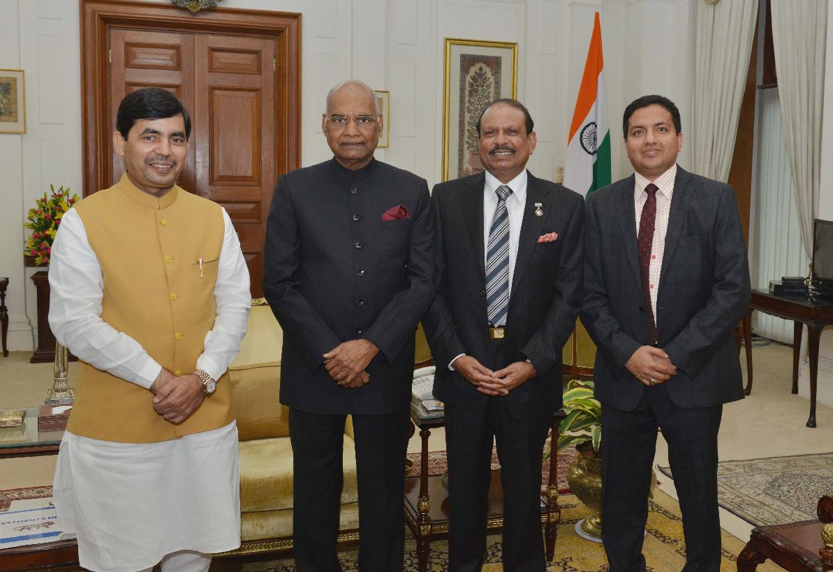 | Caption: | Shri Syed Shahnawaj Hussain, former Union Minister and Shri Yusuf Ali M.A., Managing Director, Lulu Group meeting with the President of India, Shri Ram Nath Kovind, at Rashtrapati Bhavan on August 23, 2017. |