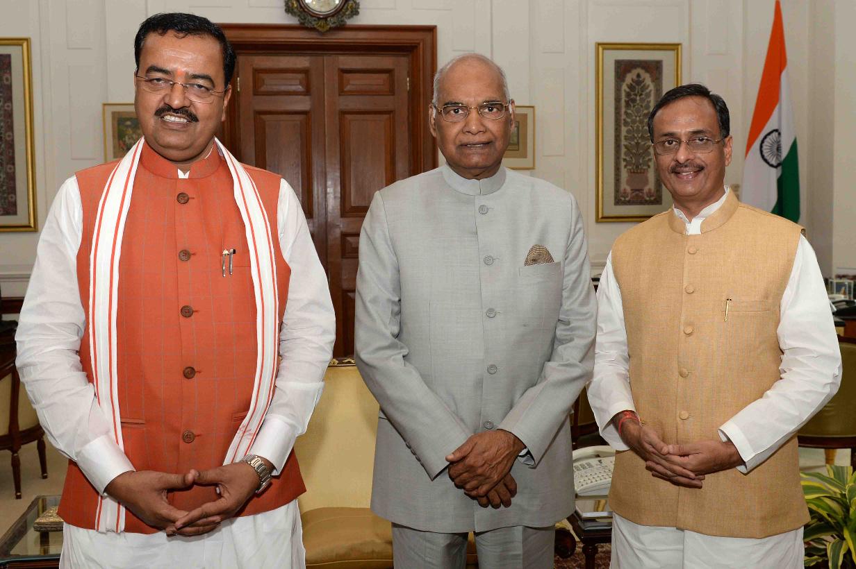 | Caption: | The Deputy Chief Ministers of Uttar Pradesh, Shri Keshav Prasad Maurya and Dr. Dinesh Sharma calling on the President of India, Shri Ram Nath Kovind, at Rashtrapati Bhavan on August 22, 2017. |