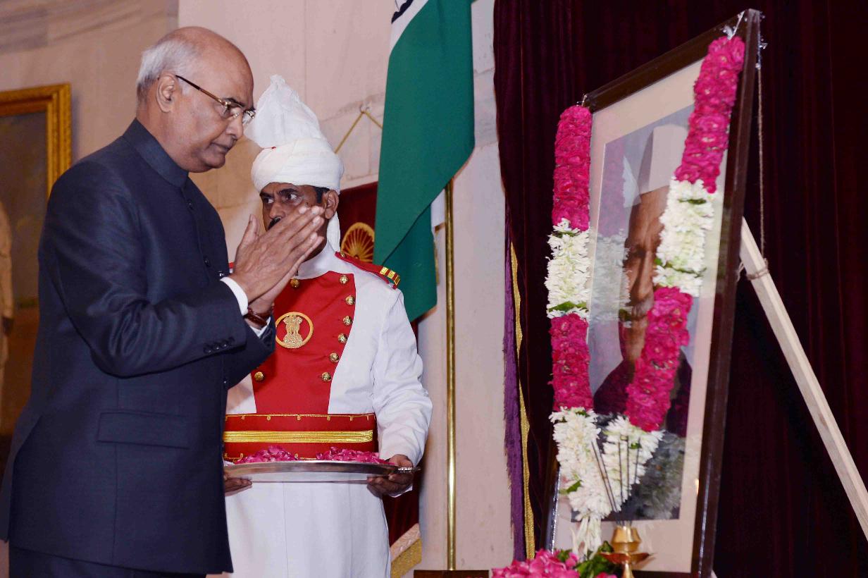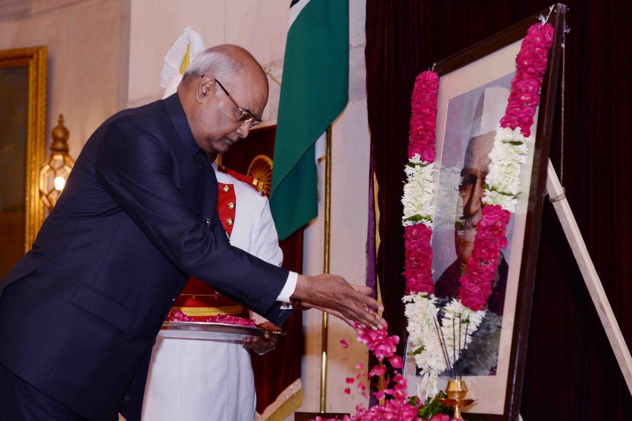 | Caption: | The President of India, Shri Ram Nath Kovind paying floral tributes to Dr. Shankar Dayal Sharma, former President of India on the occasion of his Birth Anniversary, at Rashtrapati Bhavan on August 19, 2017. |