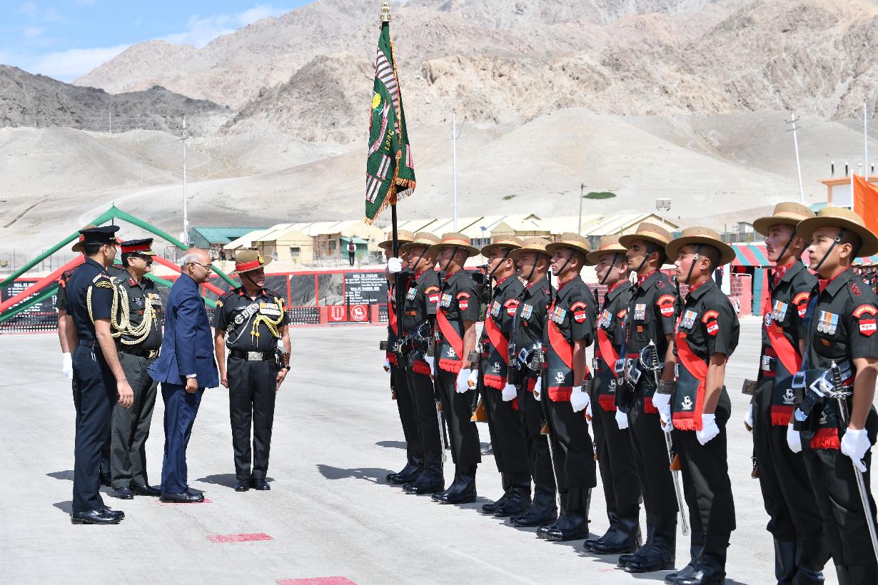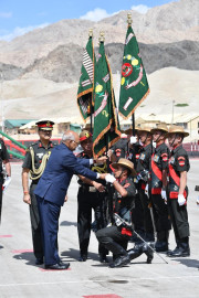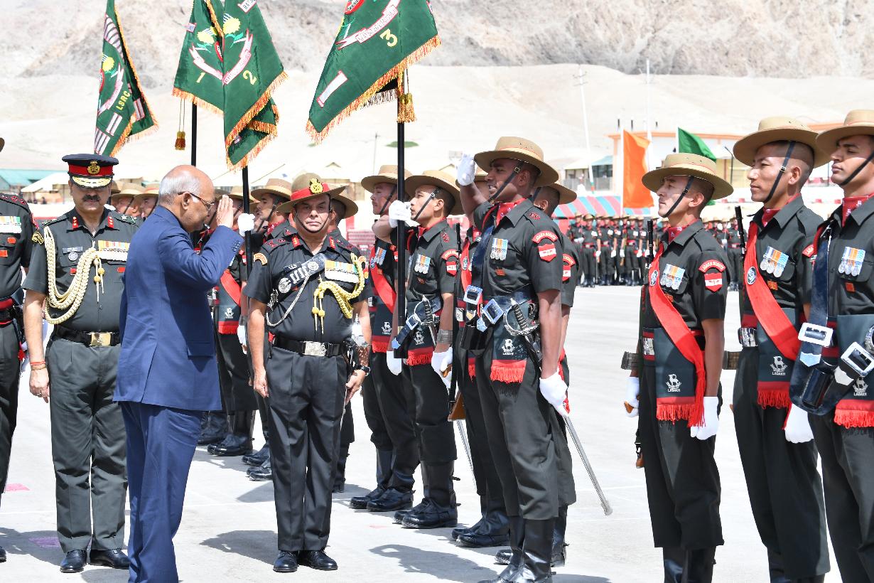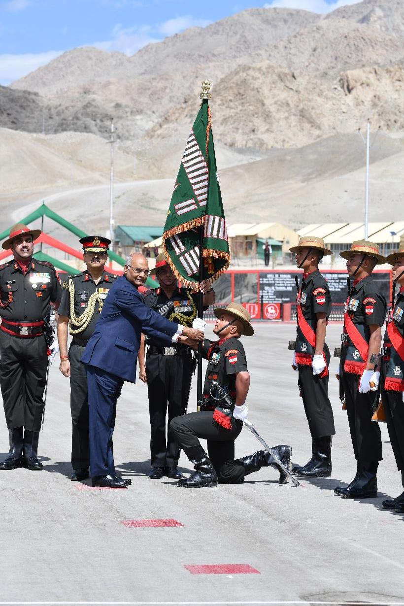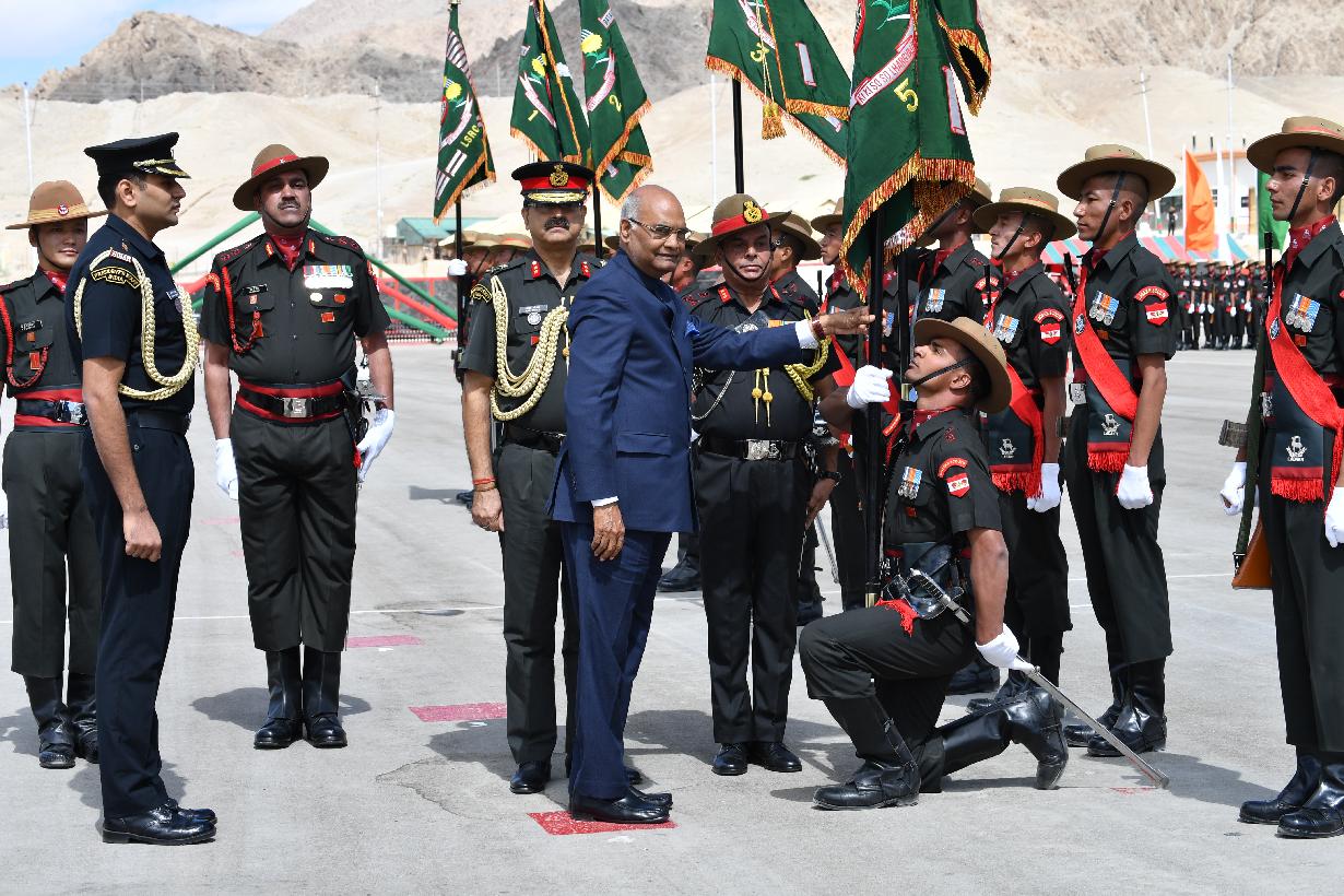 | Caption: | The President of India, Shri Ram Nath Kovind presenting the President s Colours to all five Ladakh Scouts Battalions and Ladakh Scouts Regimental Centre, at Leh, in Jammu & Kashmir on August 21, 2017. |