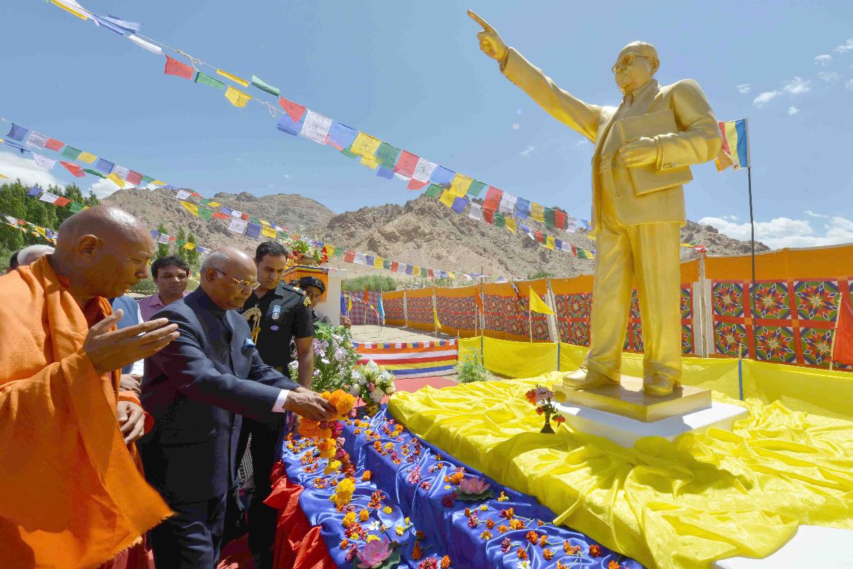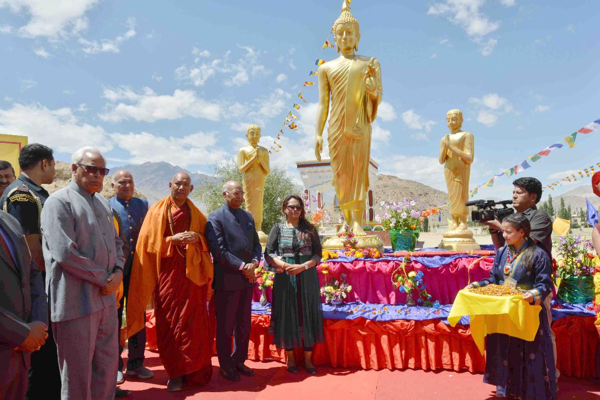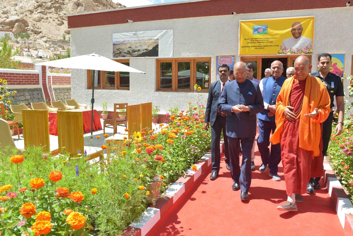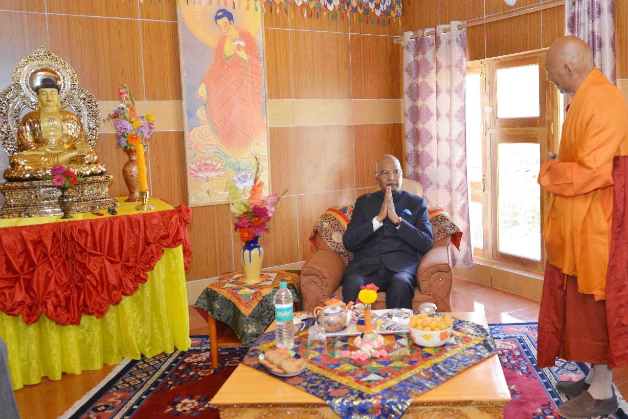 | Caption: | The President of India, Shri Ram Nath Kovind visiting the Mahabodhi International Meditation Centre, at Leh, in Jammu & Kashmir on August 21, 2017. |