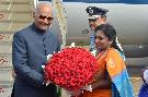 | Caption: | The President of India, Shri Ram Nath Kovind being received by the Telangana Governor, Dr. Tamilisai Soundararajan and the Telangana Chief Minister, Shri K. Chandrasekhar Rao, at Hakimpet Air Force Station, in Hyderabad on December 20, 2019. |