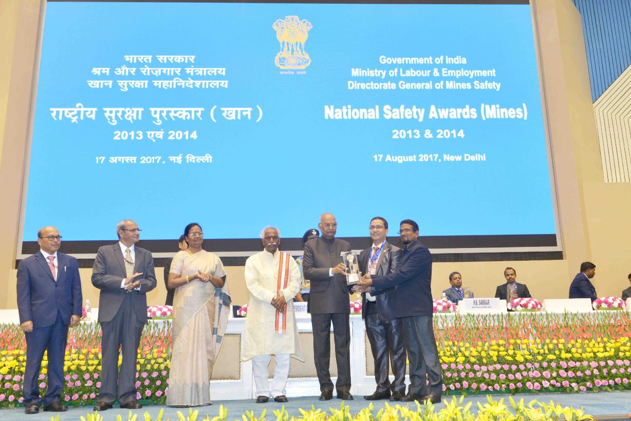 | Caption: | The President of India, Shri Ram Nath Kovind presenting the National Safety Awards (Mines) for the years 2013 & 2014, at Vigyan Bhavan, in New Delhi on August 17, 2017. |