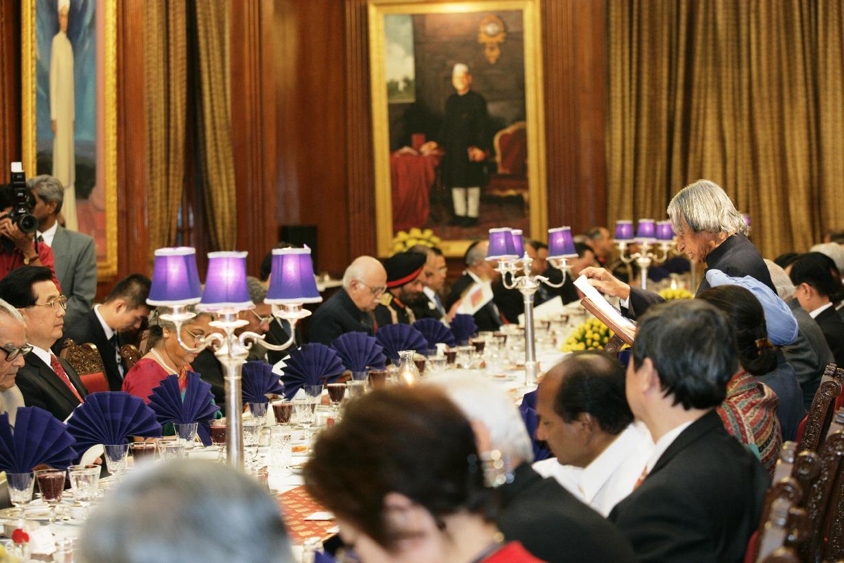 | Caption: | The President of India, Dr A P J Abdul Kalam at the Banquet Hosted in Honour of the President of the People's Republic of China, HE Mr Hu Jintao and his wife Mrs Liu Yongqing at the Forecourt of Rashtrapati Bhavan in New Delhi on Nov 21, 2006 |