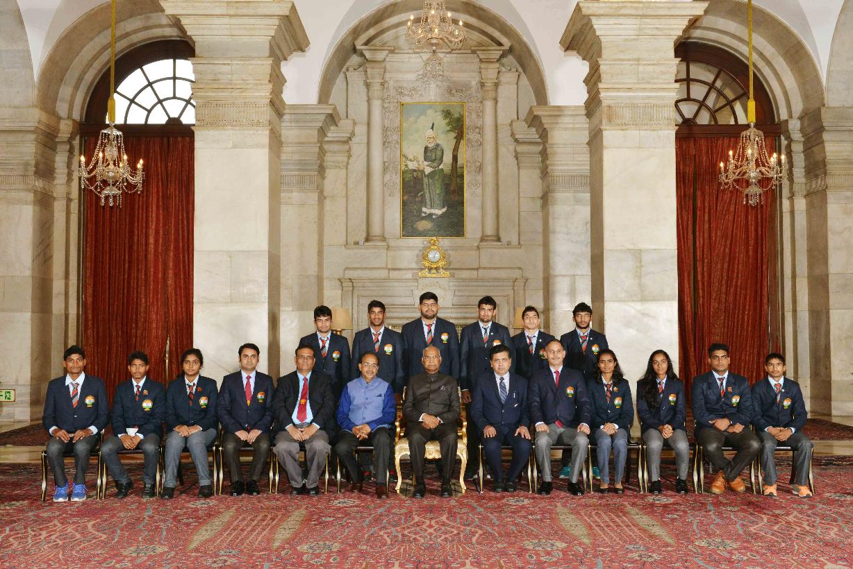 | Caption: | The President of India, Shri Ram Nath Kovind with the recipients of the National Sports & Adventure Awards, at Rashtrapati Bhavan on August 29, 2017. |