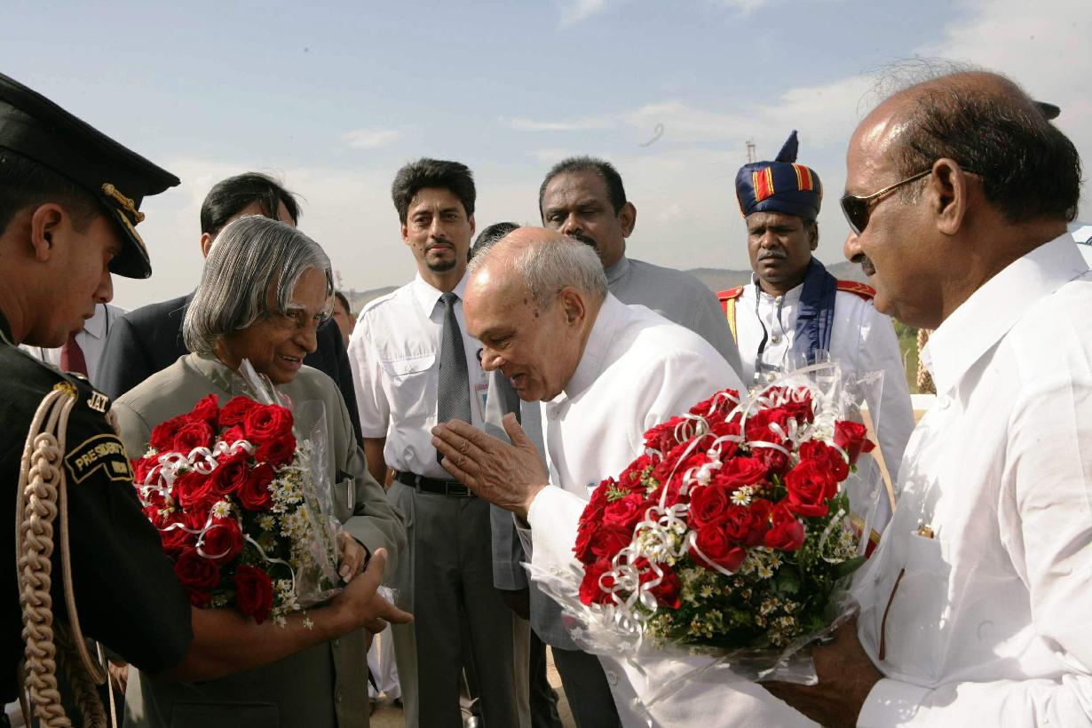 | Caption: | The President of India, Dr A P J Abdul Kalam being welcomed by the Governor of Andhra Pradesh, Shri Rameshwar Thakur at Puttaparthi Airport in Andhra Pradesh on Nov 22, 2006 |