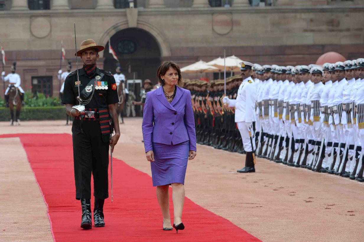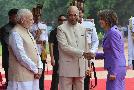 | Caption: | The President of India, Shri Ram Nath Kovind receiving the President of the Swiss Confederation, H.E. Mrs. Doris Leuthard during her Ceremonial Reception, at Forecourt, in Rashtrapati Bhavan on August 31, 2017. |