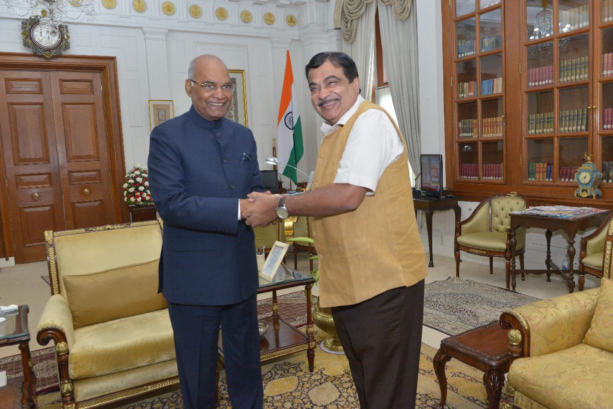 | Caption: | The Minister of Road Transport and Highways and Shipping, Shri Nitin Jairam Gadkari alongwith Ms. Sulekha Kumbhare and Shri Girish Gandhi meeting with the President of India, Shri Ram Nath Kovind, at Rashtrapati Bhavan on August 28, 2017. |