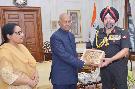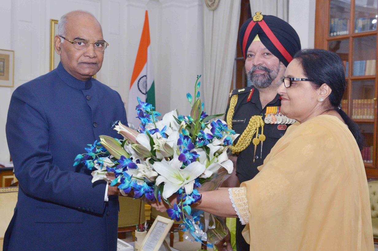 | Caption: | Lt. Gen. Kanwal Jeet Singh, Director General, EME, New Delhi alongwith his wife Smt. Harpreet Kaur meeting with the President of India, Shri Ram Nath Kovind, at Rashtrapati Bhavan on August 28, 2017. |
