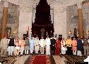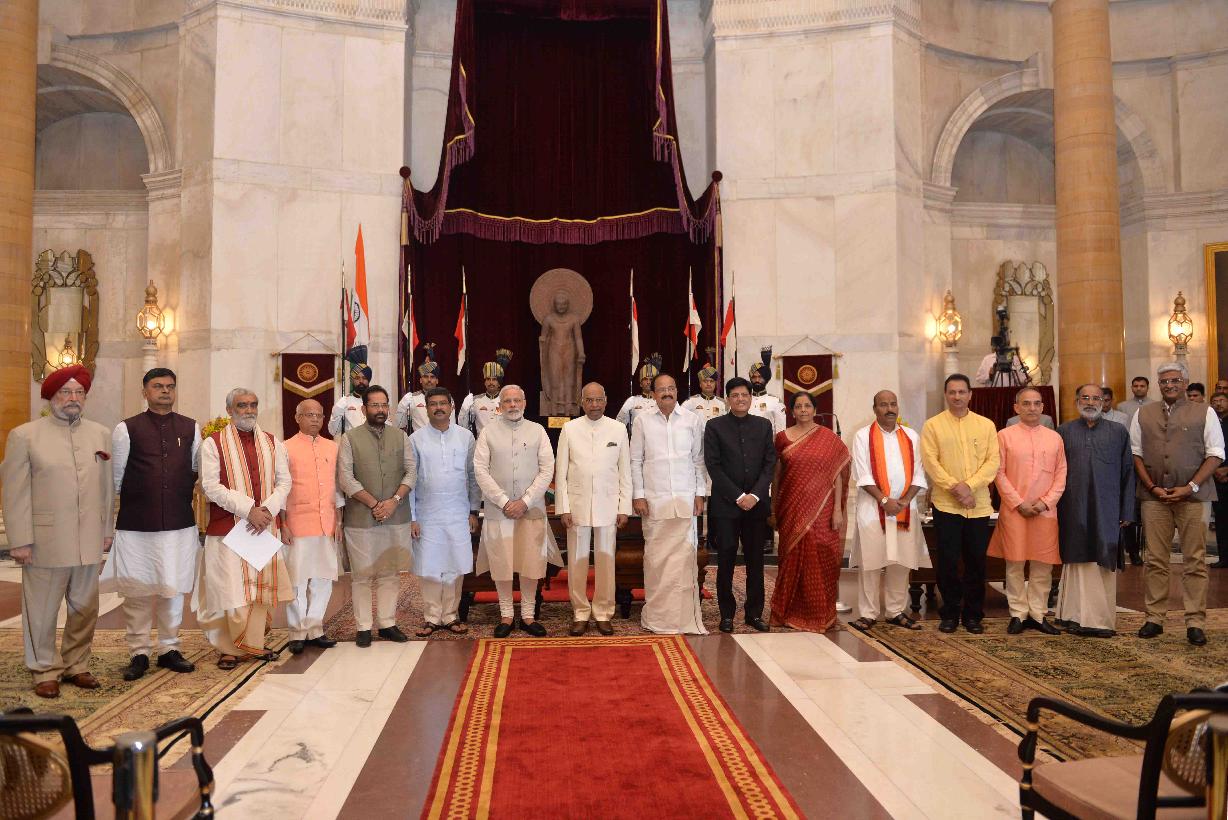 | Caption: | The President of India, Shri Ram Nath Kovind, the Vice President of India, Shri M. Venkaiah Naidu and the Prime Minister of India, Shri Narendra Modi with the newly inducted Ministers after a Swearing-in Ceremony at Rashtrapati Bhavan on September 03, 2017. |