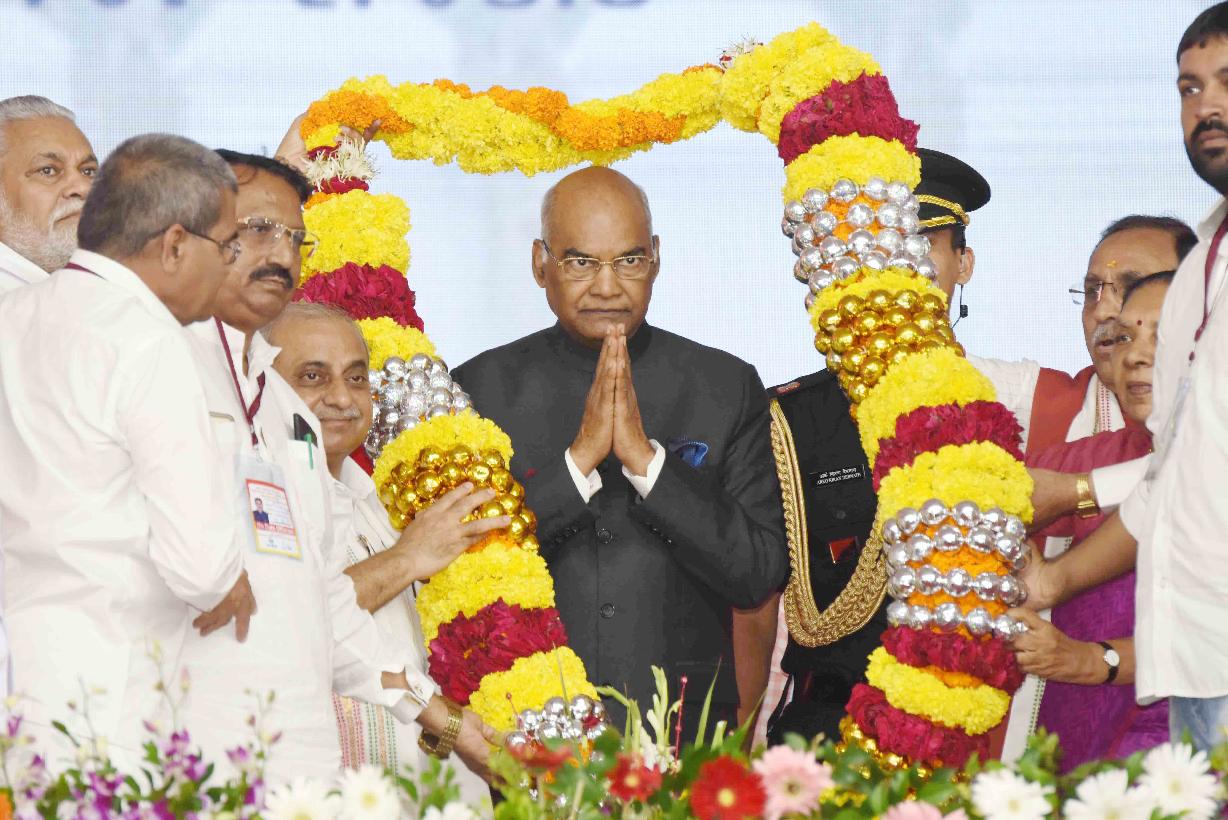 | Caption: | The President of India, Shri Ram Nath Kovind at the Foundation Stone laying ceremony of Saurashtra Narmada Avataran Irrigation Yojana (SAUNI) Phase-II Link-4, at Rajkot, in Gujarat on September 04, 2017. |