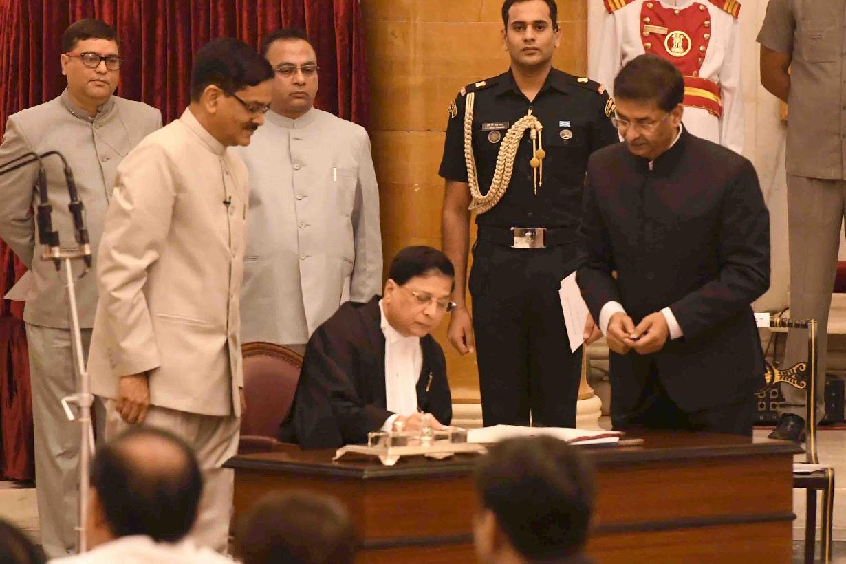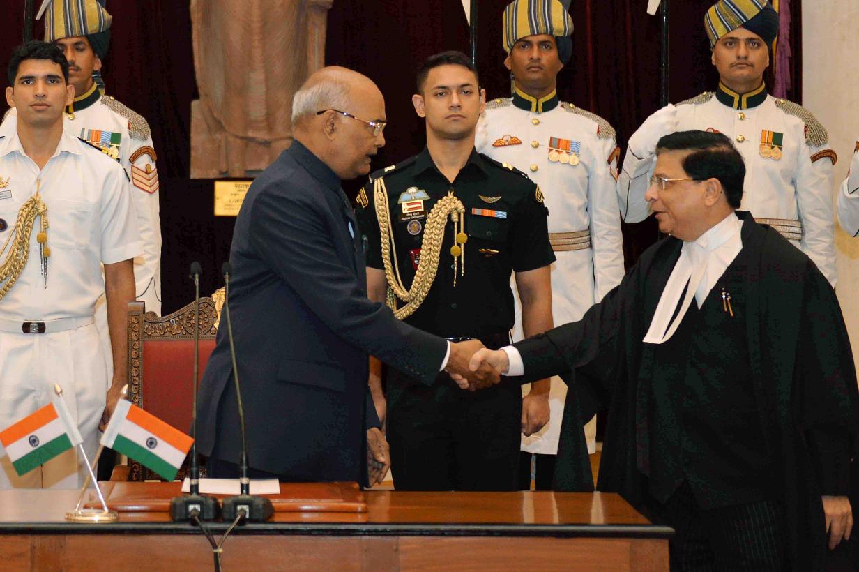 | Caption: | The President of India, Shri Ram Nath Kovind during the Swearing-in-Ceremony of the Chief Justice of the Supreme Court of India, Shri Justice Dipak Misra, at Rashtrapati Bhavan on August 28, 2017. |