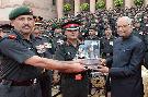 | Caption: | The President of India, Shri Ram Nath Kovind being presented the Battalion Memento by the Commanding Officer, 8 JAK LI (Siachen), at Rashtrapati Bhavan on August 26, 2017. |