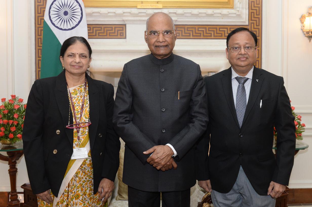 | Caption: | Prof. (Dr.) Tanuja Manoj Nesari, Director, All India Institute of Ayurveda Ministry of Ayush and Dr. P.K. Srivastava, Physician to the President meeting with the President of India, Shri Ram Nath Kovind, at Rashtrapati Bhavan on December 12, 2019. |