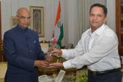 | Caption: | Shri Subhash Chandra Dubey, former SP, Kanpur Dehat meeting with the President of India, Shri Ram Nath Kovind, at Rashtrapati Bhavan on September 09, 2017. |