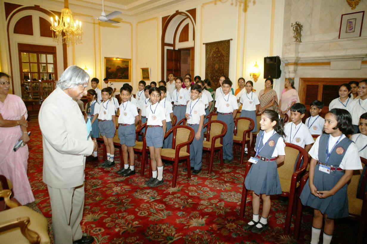 | Caption: | The President of India, Dr A P J Abdul Kalam interacting with the Students from Amrita Vidyalaya, Saket, New Delhi at the Yellow Drawing Room of Rashtrapati Bhavan in New Delhi on June 12, 2007 |