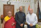 | Caption: | Ven. Lama Lobzang, President, Asoka Mission alongwith Prof. Ravindra Panth meeting with the President of India, Shri Ram Nath Kovind, at Rashtrapati Bhavan on September 05, 2017. |