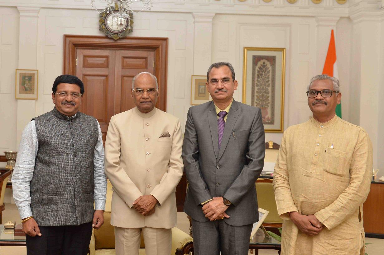 | Caption: | The Members, Gujarat Public Service Commission, Shri Nathu Sosa and Shri R.P. Shukla meeting with the President of India, Shri Ram Nath Kovind, at Rashtrapati Bhavan on September 16, 2017. |