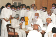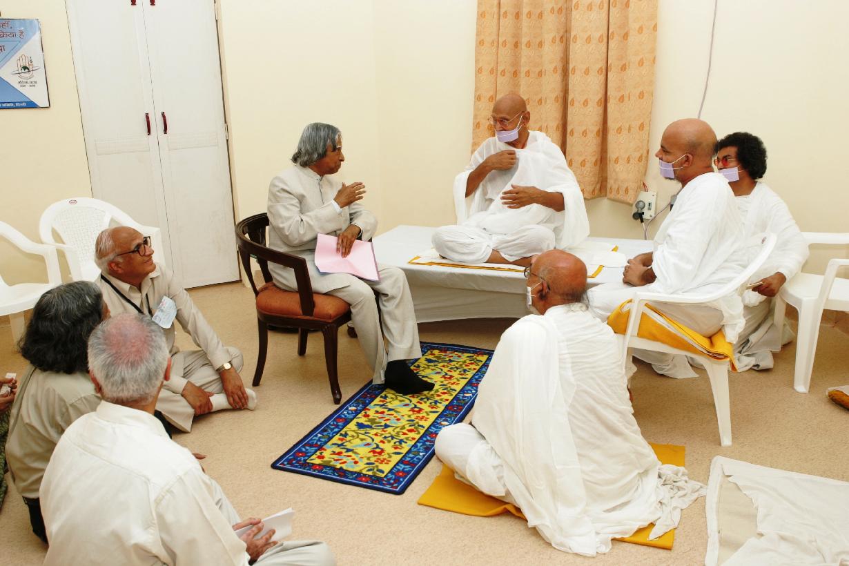 | Caption: | The President of India, Dr A P J Abdul Kalam greeting to HH Acharya Shri Mahapragyaji on the occasion of his Birthday at Adhyatma Sadhna Kendra, Chhatarpur Road in New Delhi on July 04, 2005 |