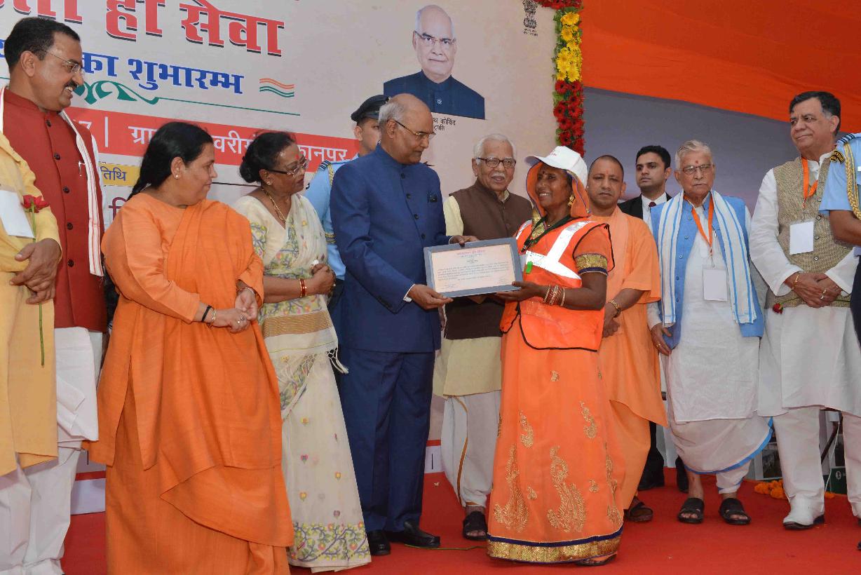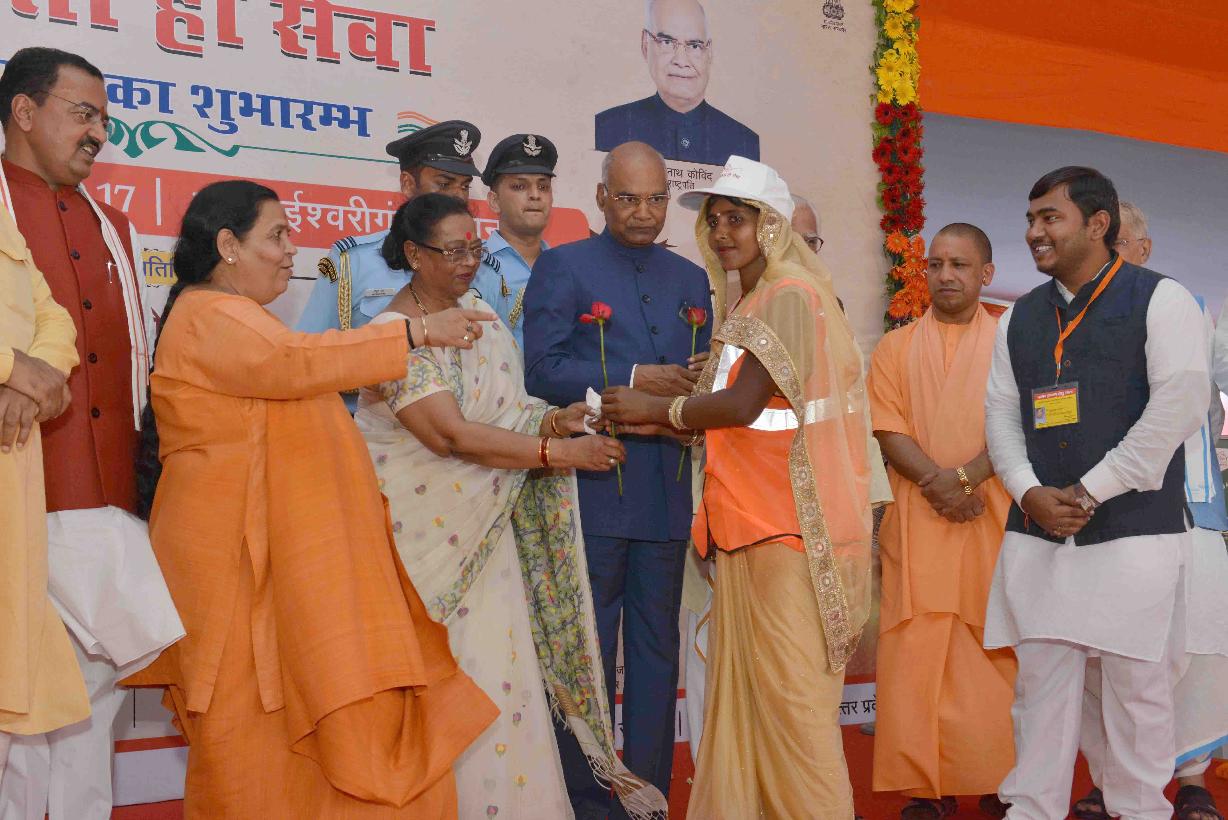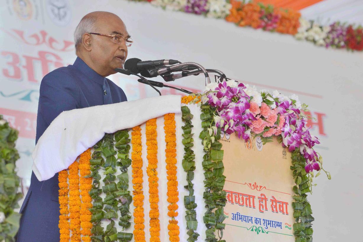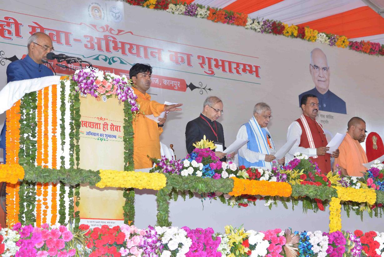 | Caption: | The President of India, Shri Ram Nath Kovind during the launch of "Swachhta Hi Seva" Programme at Iswariganj Village, Kanpur, in Uttar Pradesh on September 15, 2017. |