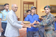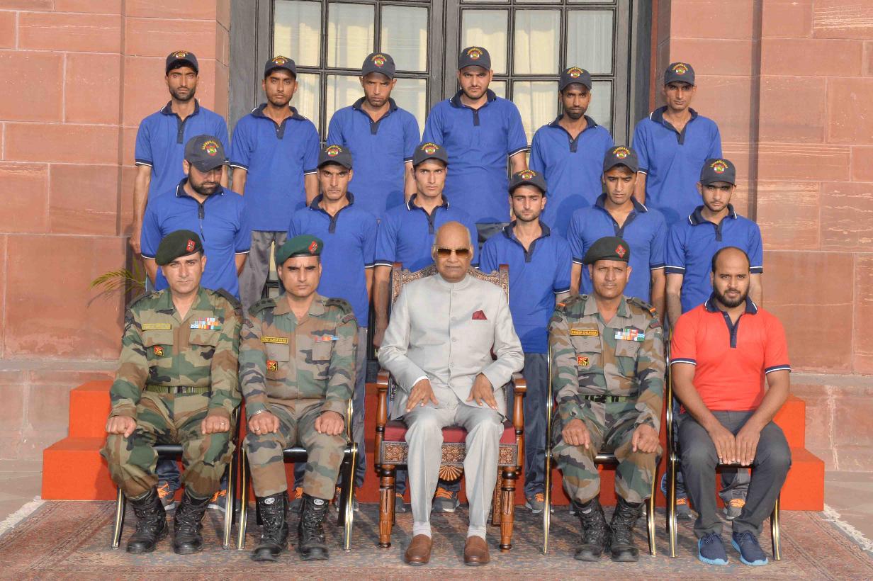| Caption: | A Youth delegation from Gurez Valley, Jammu & Kashmir attending Operation Sadbhavana tour, organised by the 109 Infantry Brigade meeting with the President of India, Shri Ram Nath Kovind, at Rashtrapati Bhavan on September 20, 2017. |