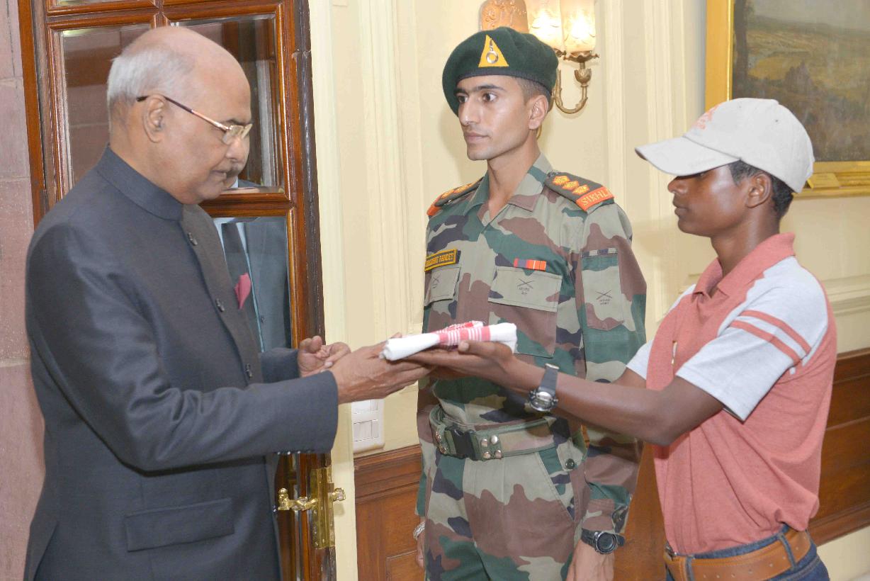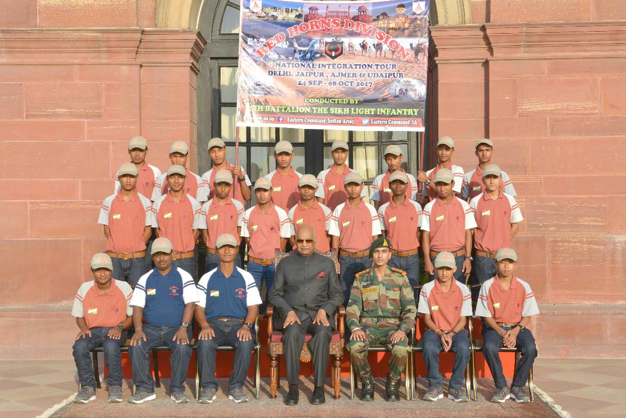 | Caption: | A group of students from Chirang district of Assam attending Operation Sadbhavana tour, organised by the 7 SIKH Light Infantry meeting with the President of India, Shri Ram Nath Kovind, at Rashtrapati Bhavan on September 25, 2017. |